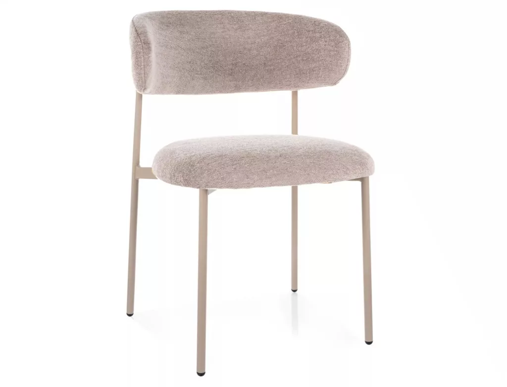 Modern vonalvezetésű, kényelmes étkezőszék bézs Brego szövettel és elegáns kasmír színű fém vázzal.
