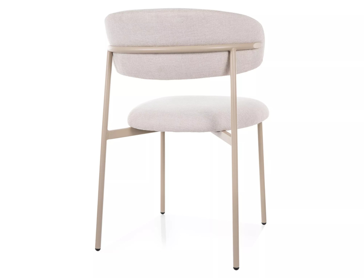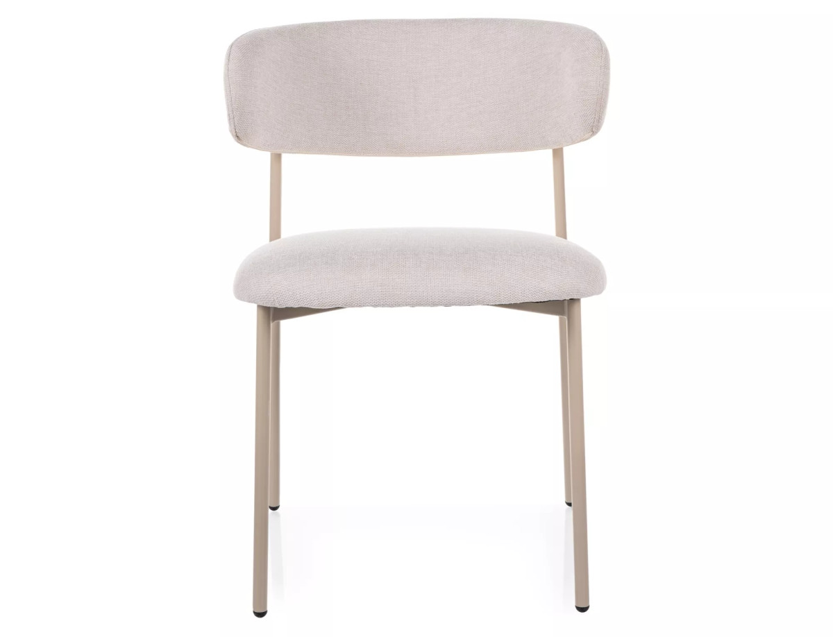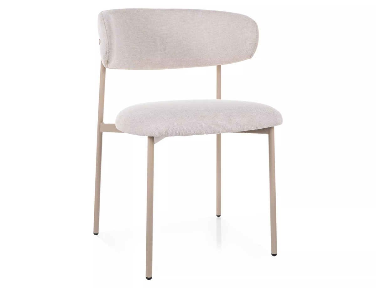 Modern vonalvezetésű, kényelmes étkezőszék világos bézs Brego szövetkárpittal és strapabíró fém vázzal.