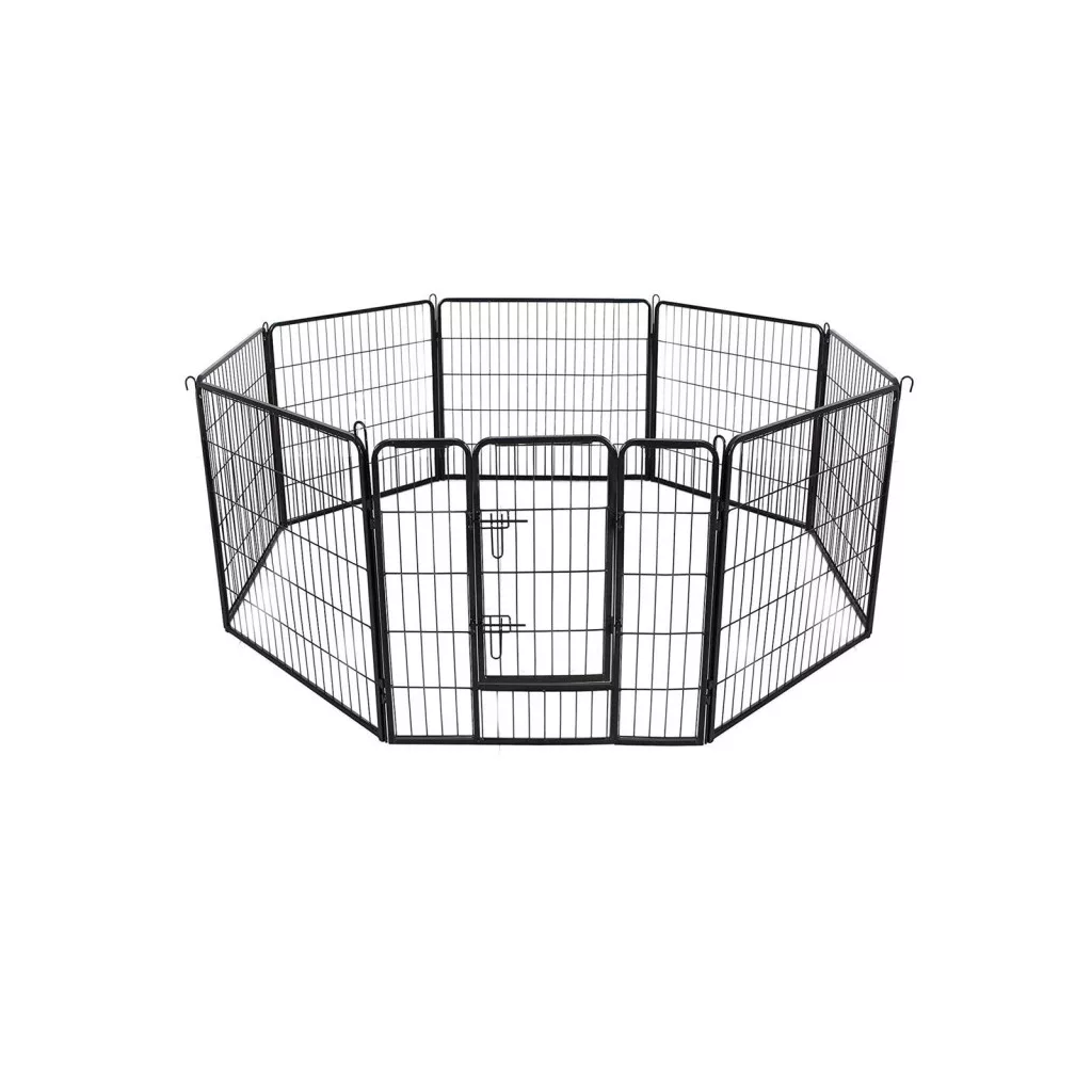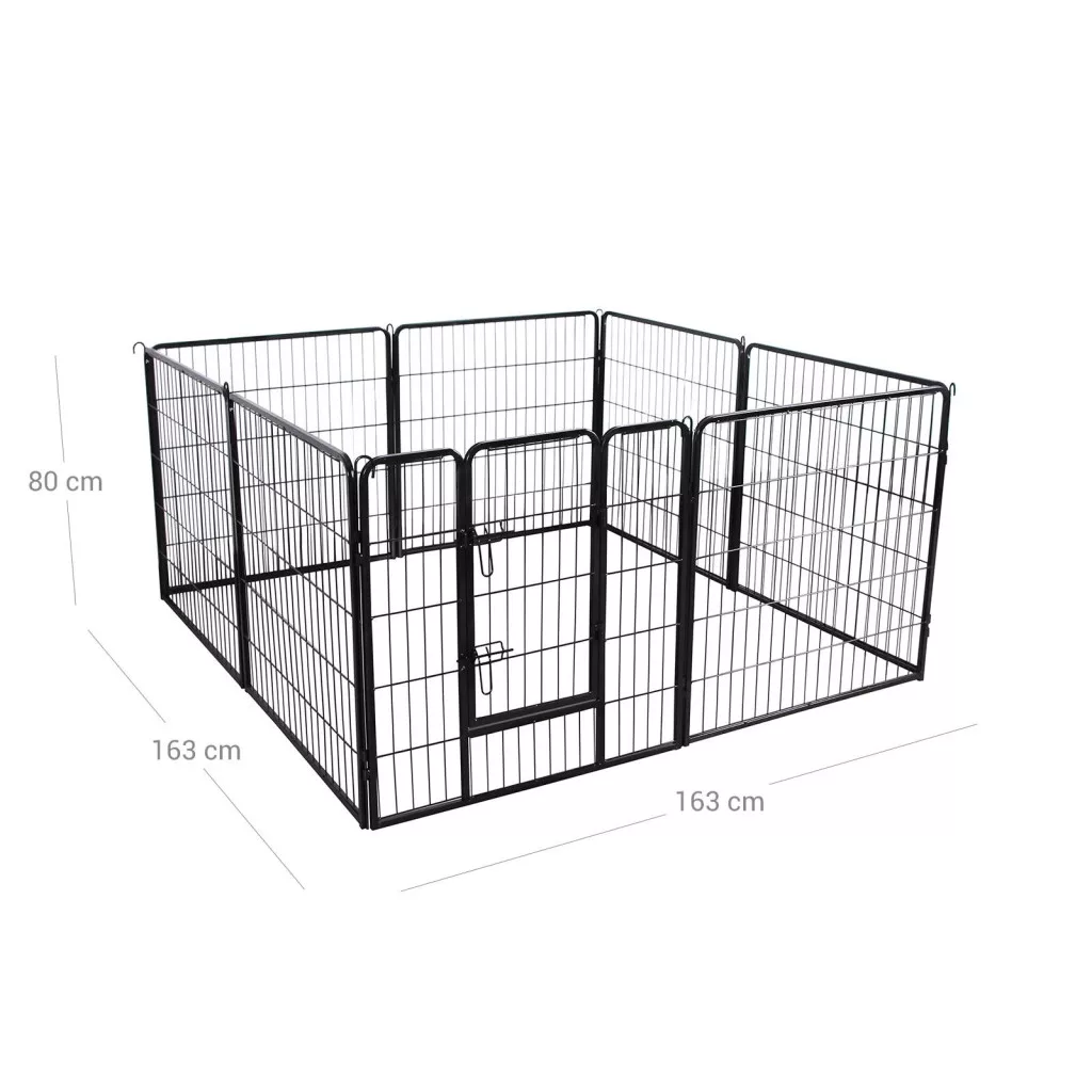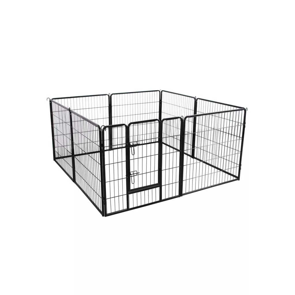Ez a prémium minőségű, 8 paneles kisállat kifutó ideális megoldást kínál kedvence számára. A porszórt felületkezeléssel ellátott, vastag acélcsövekből készült szerkezet tartós és stabil használatot biztosít. A lekerekített sarkok és élek maximális biztonságot nyújtanak, míg a dupla reteszelésű ajtó megakadályozza a szökést.