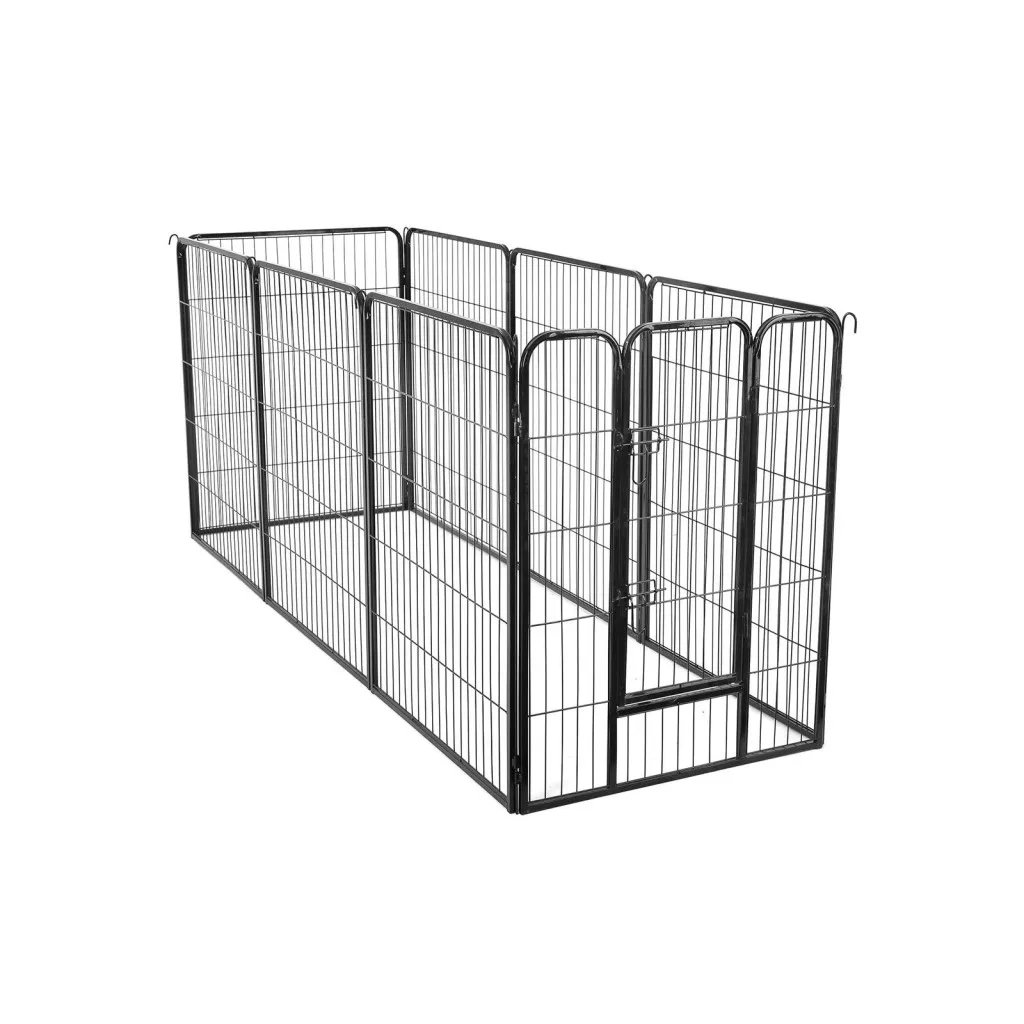 Sokoldalú, strapabíró fém kisállat kifutó 8 panellel, amely tökéletes megoldást nyújt kutyák, kölykök és más kisállatok biztonságos elkerítéséhez mind beltéren, mind a szabadban.