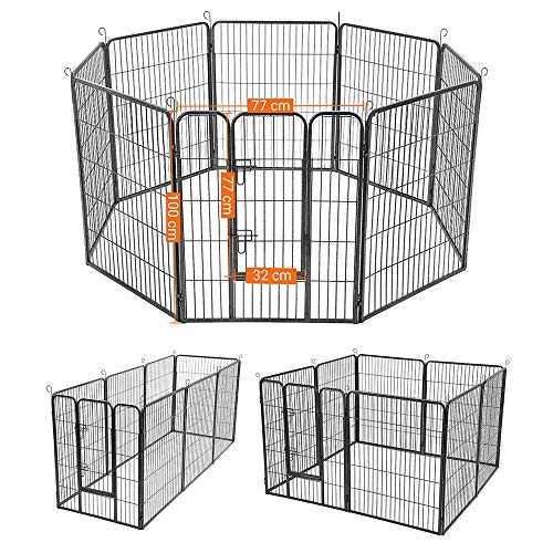 Sokoldalú, strapabíró fém kisállat kifutó 8 panellel, amely tökéletes megoldást nyújt kutyák és más kisállatok biztonságos szabadtéri vagy beltéri tartására.