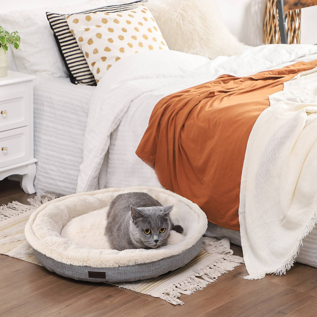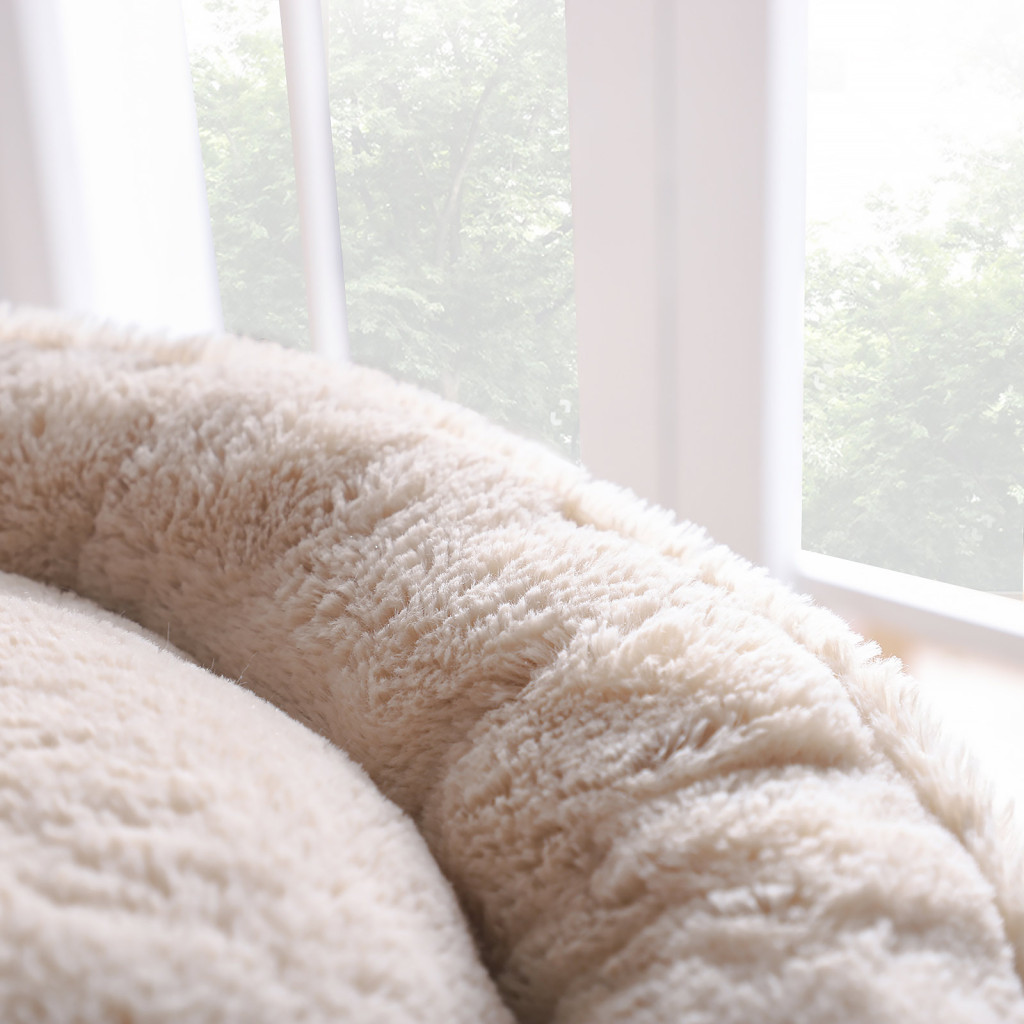 Luxus kialakítású, fánk formájú kisállat fekhely memóriahabos párnázással, amely tökéletes kényelmet biztosít kutyák és macskák számára.