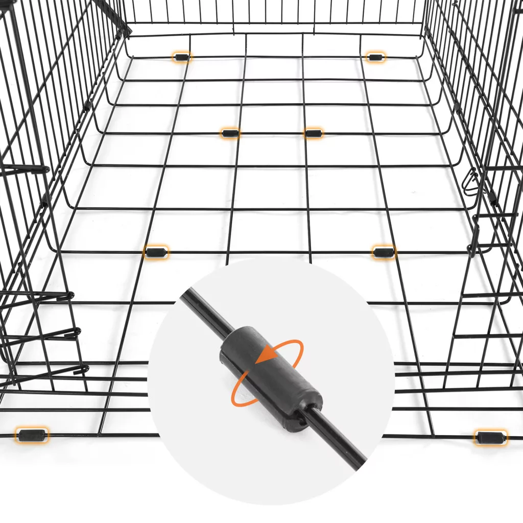 A ketrec praktikus kialakításának köszönhetően könnyen összecsukható és szállítható. A kivehető elválasztó panel lehetővé teszi a tér felosztását, ami különösen hasznos kölykök esetében vagy a szobatisztaság tanításánál. A kivehető műanyag tálca megkönnyíti a tisztítást és védi a padlót.