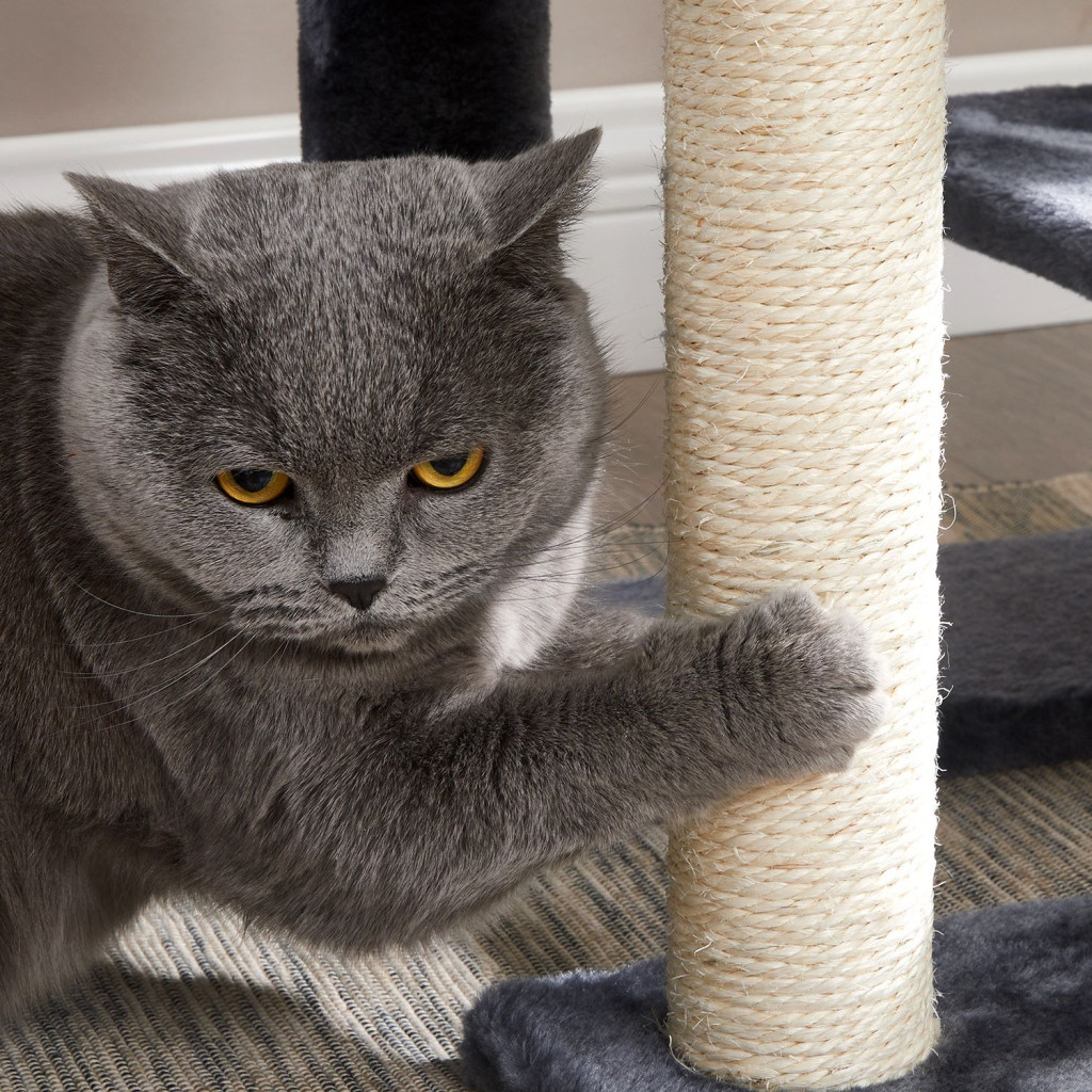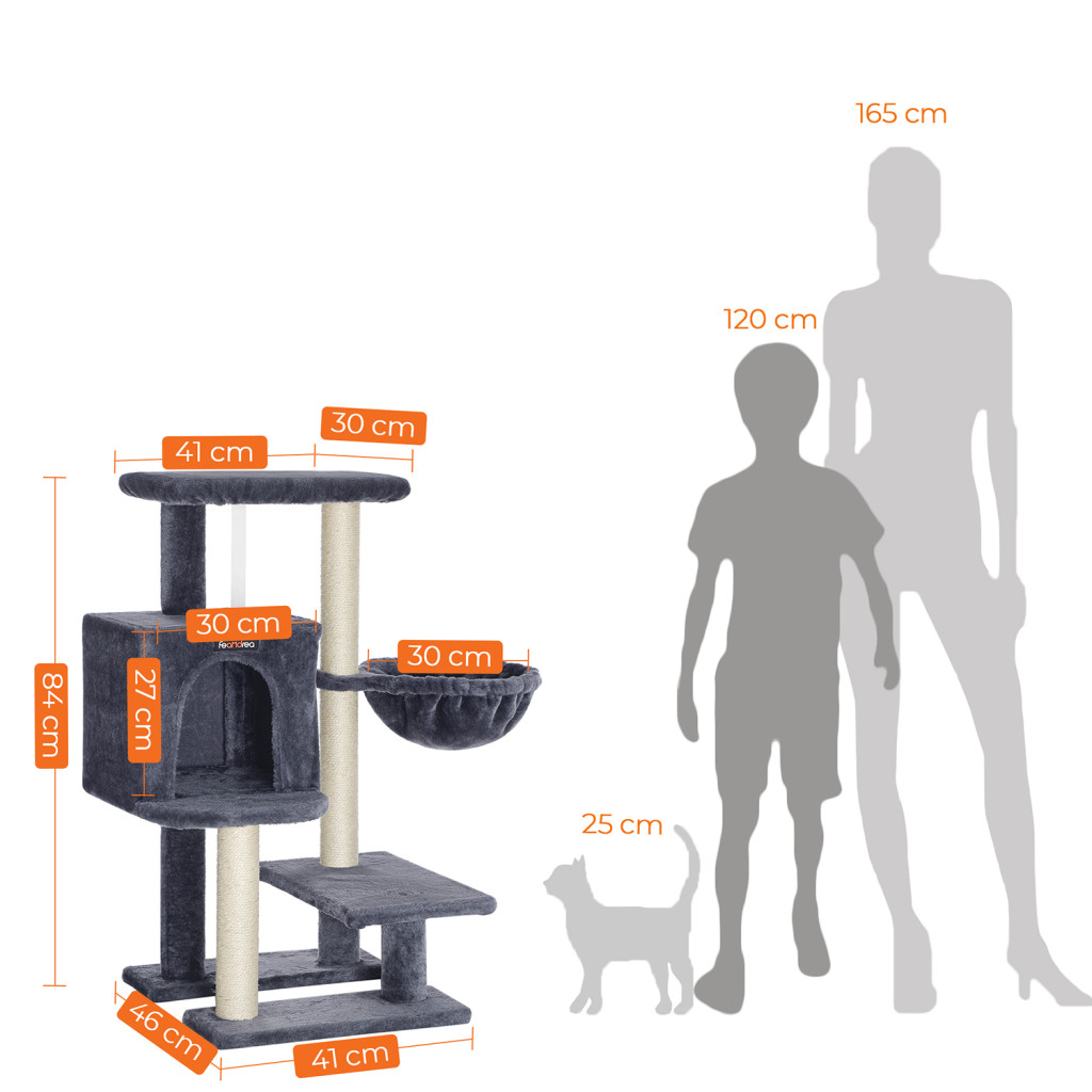 FEANDREA Kompakt Macskabútor 84 cm Füstszürke Plüss Kaparófa