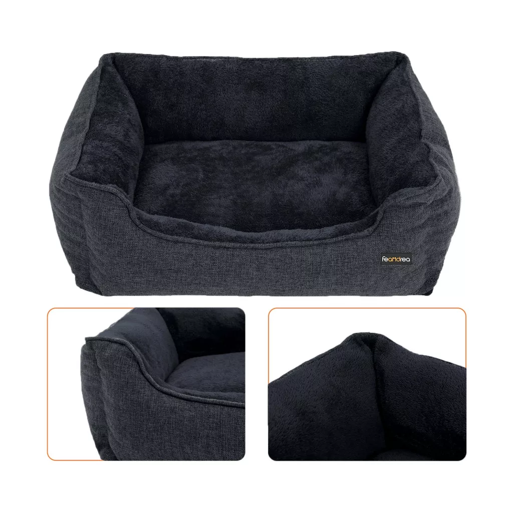 Ez a prémium minőségű FEANDREA kutyaágy egyesíti a kényelmet és a praktikusságot. A vastag párnázat és az ultra-puha plüss anyag tökéletes pihenőhelyet biztosít, míg a megemelt perem kényelmes fejtámaszt nyújt kedvence számára.