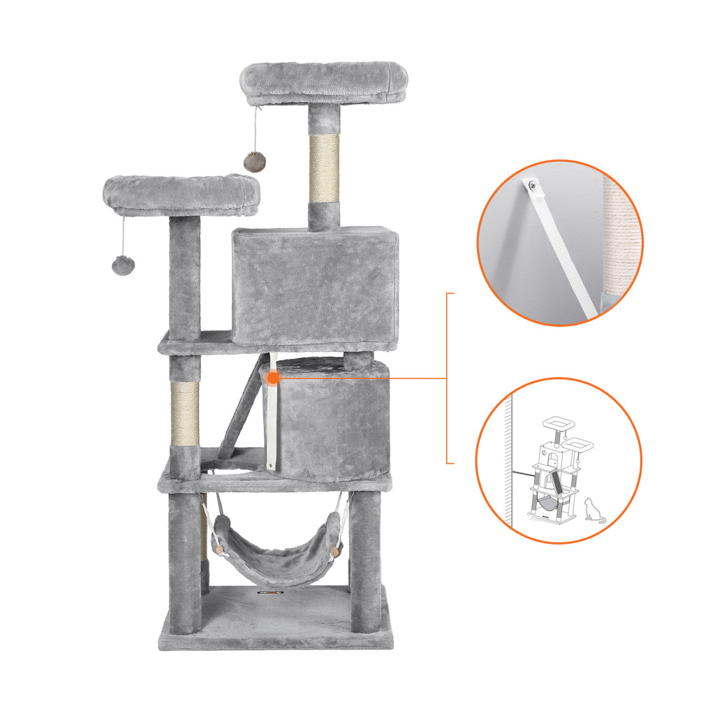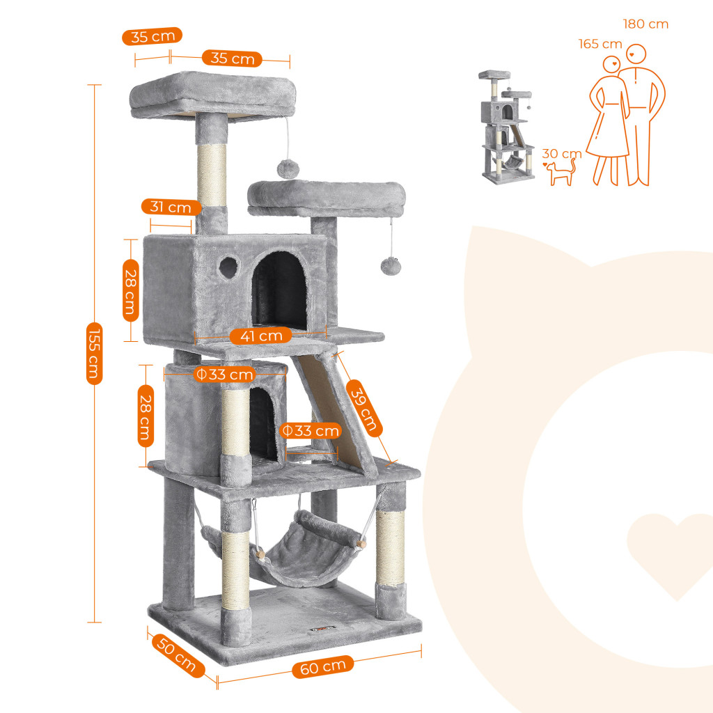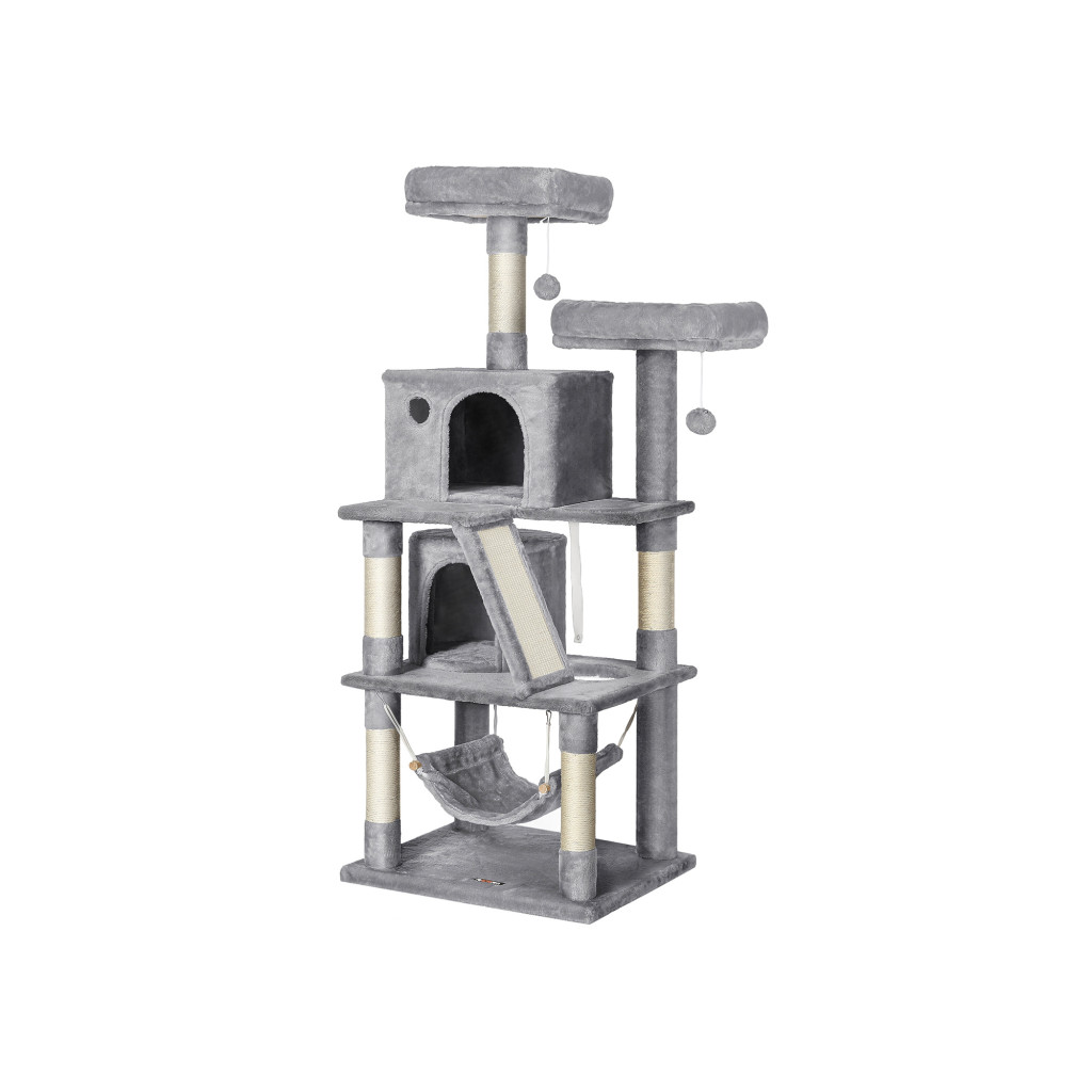 FEANDREA Luxus Macskabútor Két Barlangos Pihenővel Világosszürke 155 cm