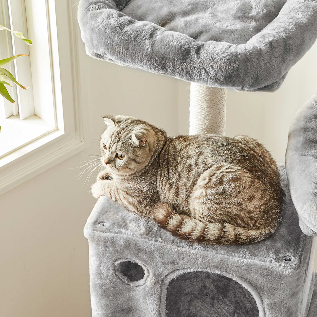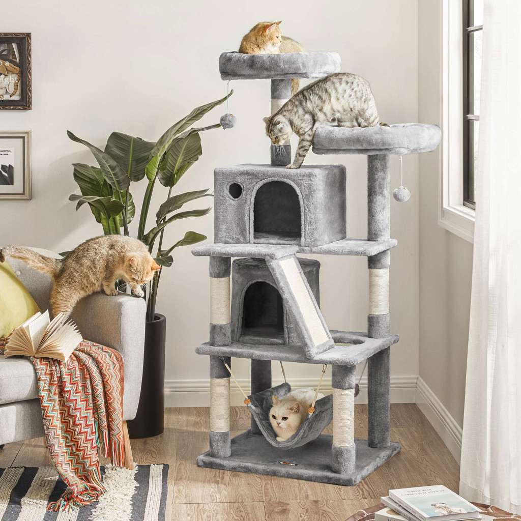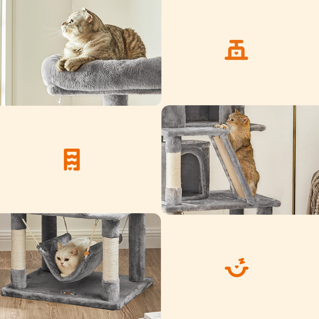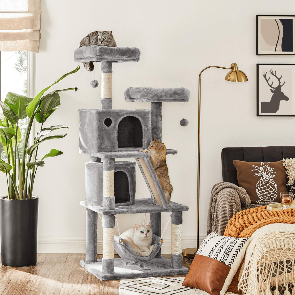 FEANDREA Luxus Macskabútor Két Barlangos Pihenővel Világosszürke 155 cm