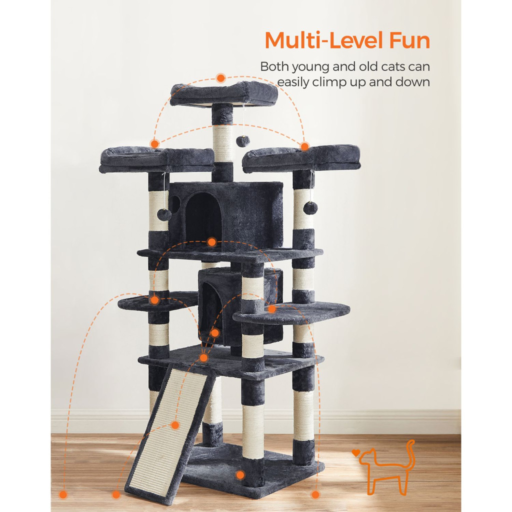 FEANDREA Luxus Macskabútor Többszintes Füstszürke Kaparófa 170 cm