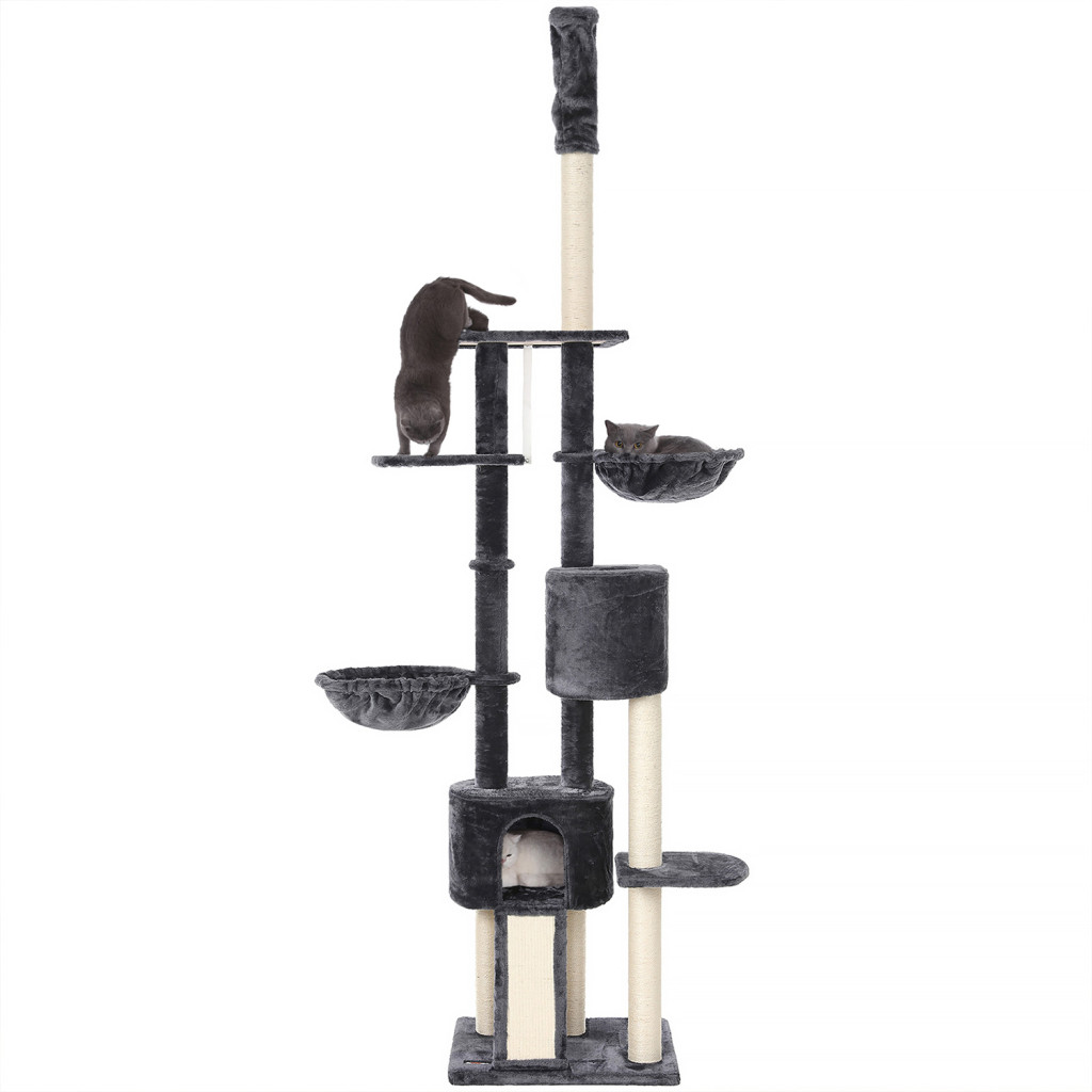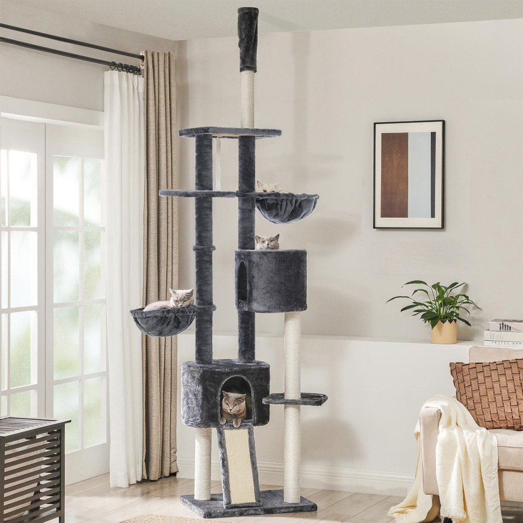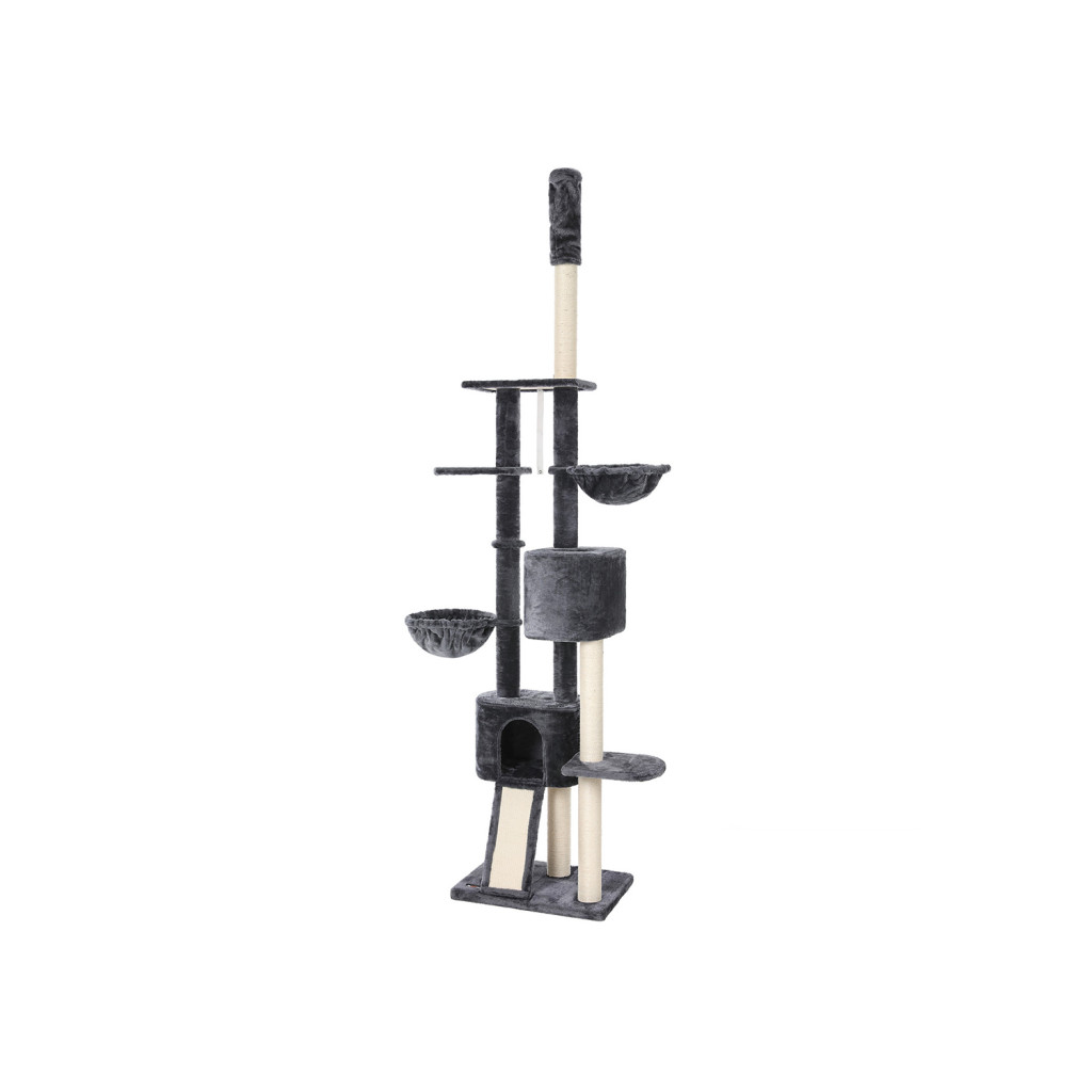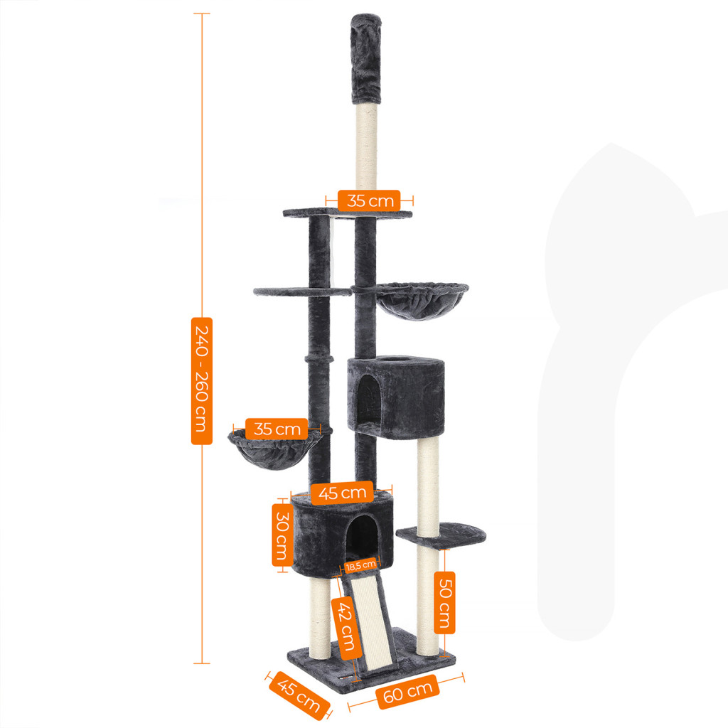Ez a mennyezetig érő macskafa tökéletes megoldást nyújt a magaslatokat kedvelő cicák számára. A 2,4-2,6 méter közötti állítható magasságával maximálisan kihasználja a függőleges teret, miközben stabil és biztonságos játszóteret biztosít kedvence számára.