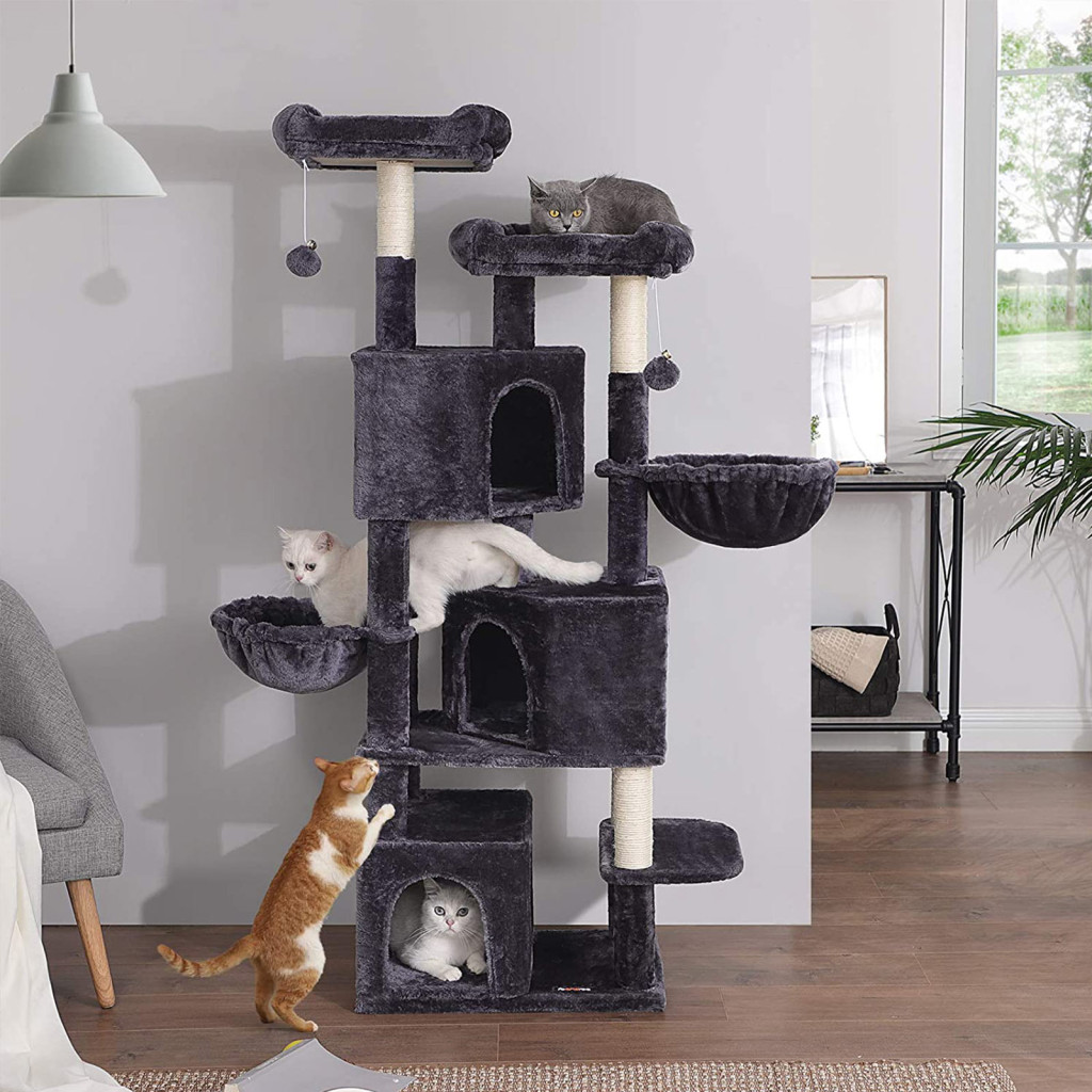 FEANDREA Nagy Macskafa 164 cm Füstszürke Luxus Macskabútor 3 Barlangos