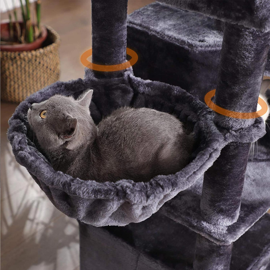 Többszintes, luxus macskabútor 3 kuckóval, 2 pihenőkosárral és 2 kilátóplatformmal, amely tökéletes otthont nyújt akár több macska számára is.