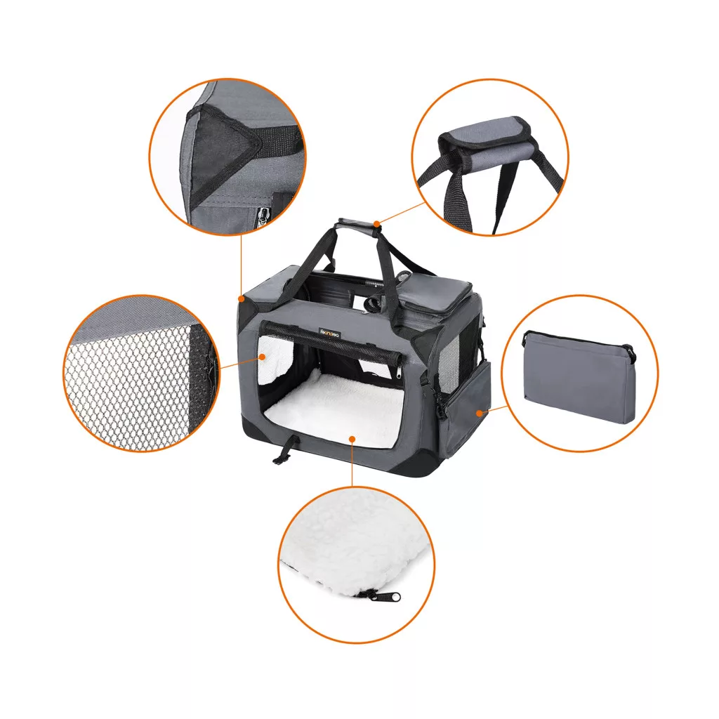 FEANDREA Összecsukható Kisállat Hordozó Táska Szürke Oxford Szövetből