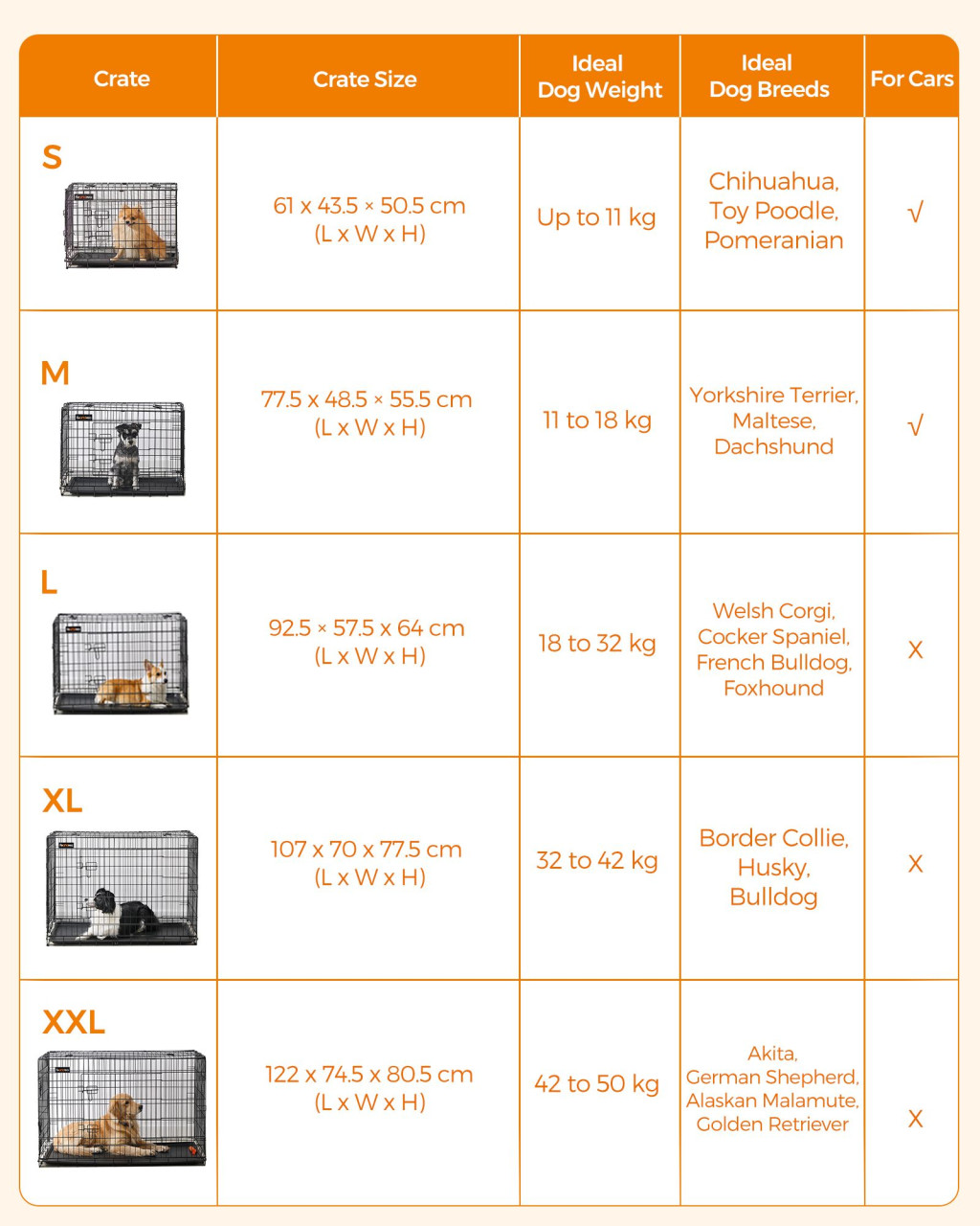 Biztonságos és kényelmes összecsukható kutyaketrec két ajtóval, ideális 18-32 kg közötti kutyák számára, könnyen tisztítható kivehető tálcával.