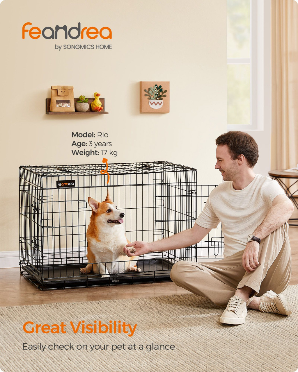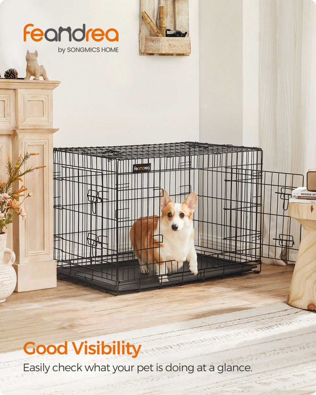 FEANDREA Összecsukható Kutyaketrec L Méretű Fekete Két Ajtóval