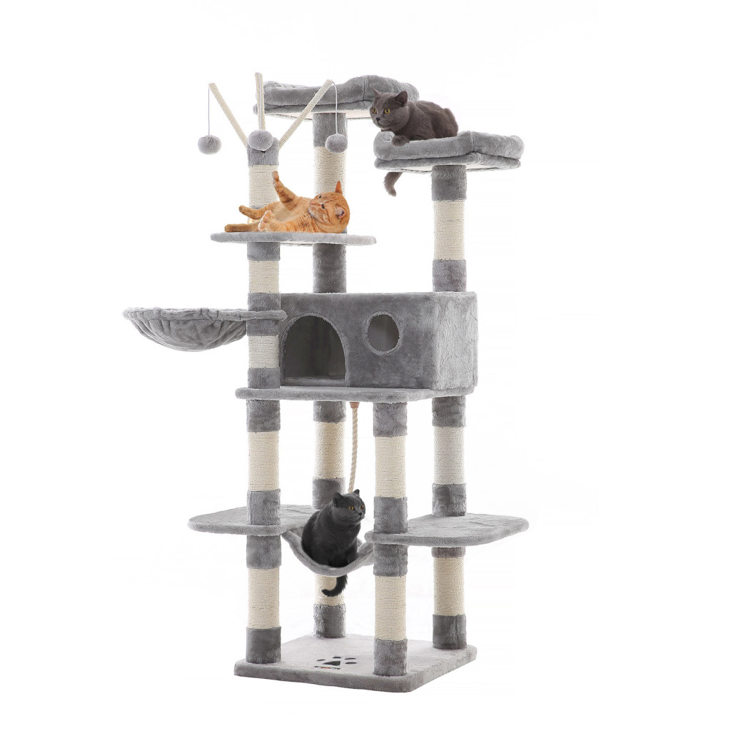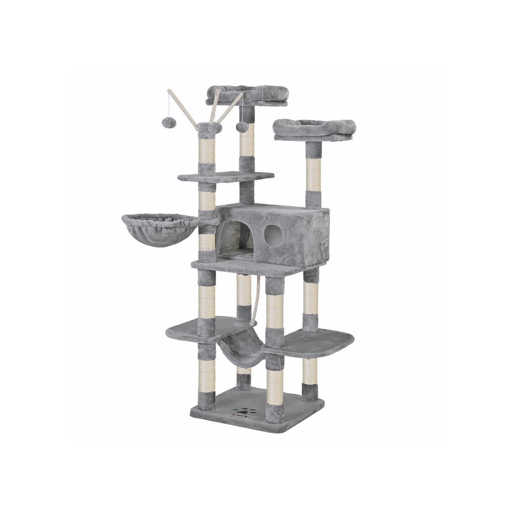 A sisalkötéllel bevont oszlopok kiváló kaparási lehetőséget biztosítanak, míg a beépített játékok - köztük 3 szőrlabda és függő játékok - folyamatos szórakozást garantálnak. A széles platformok és a tágas kialakítás még a nagyobb testű macskák számára is kényelmes mozgásteret biztosítanak.