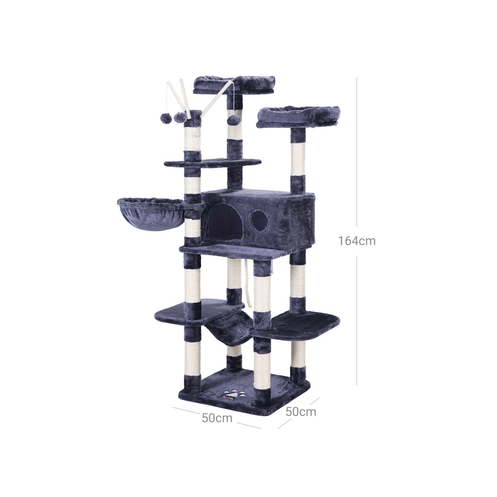 Ez a 164 cm magas, XXL méretű macskafa tökéletes választás nagyobb cicák számára is. Többszintű kialakítása, barlanggal, függőággyal, kosárral és kaparóoszlopokkal garantálja a végtelen szórakozást és pihenést.