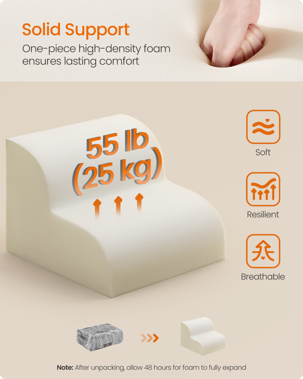 • Nagy sűrűségű habkonstrukció: Tartós, stabil támasztást biztosít, amely megőrzi alakját hosszú távon, így kedvence biztonságban érezheti magát minden használat alkalmával