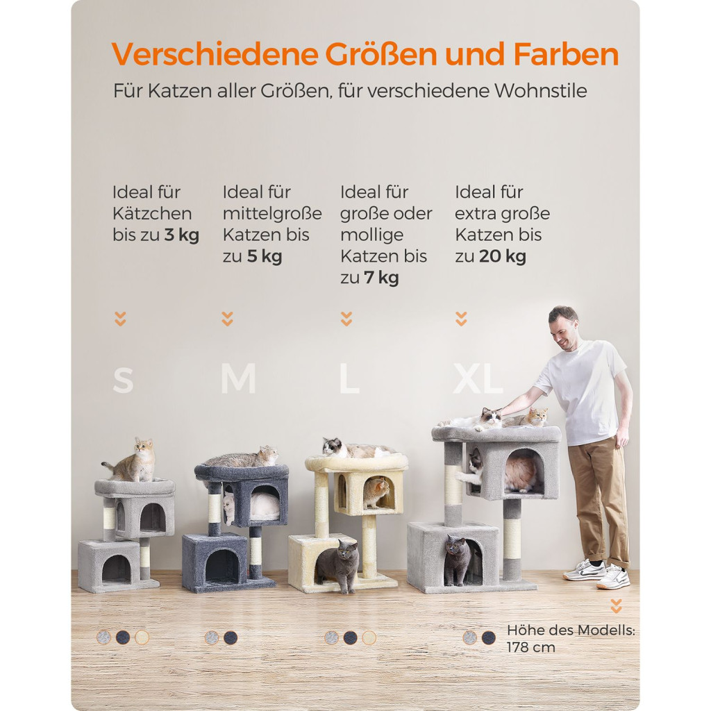Kompakt, 67 cm magas macskabútor két kuckóval és kaparófával, kifejezetten 3 kg alatti kiscicák számára tervezve. Puha plüss borítással és tágas pihenőfelülettel a maximális kényelemért.