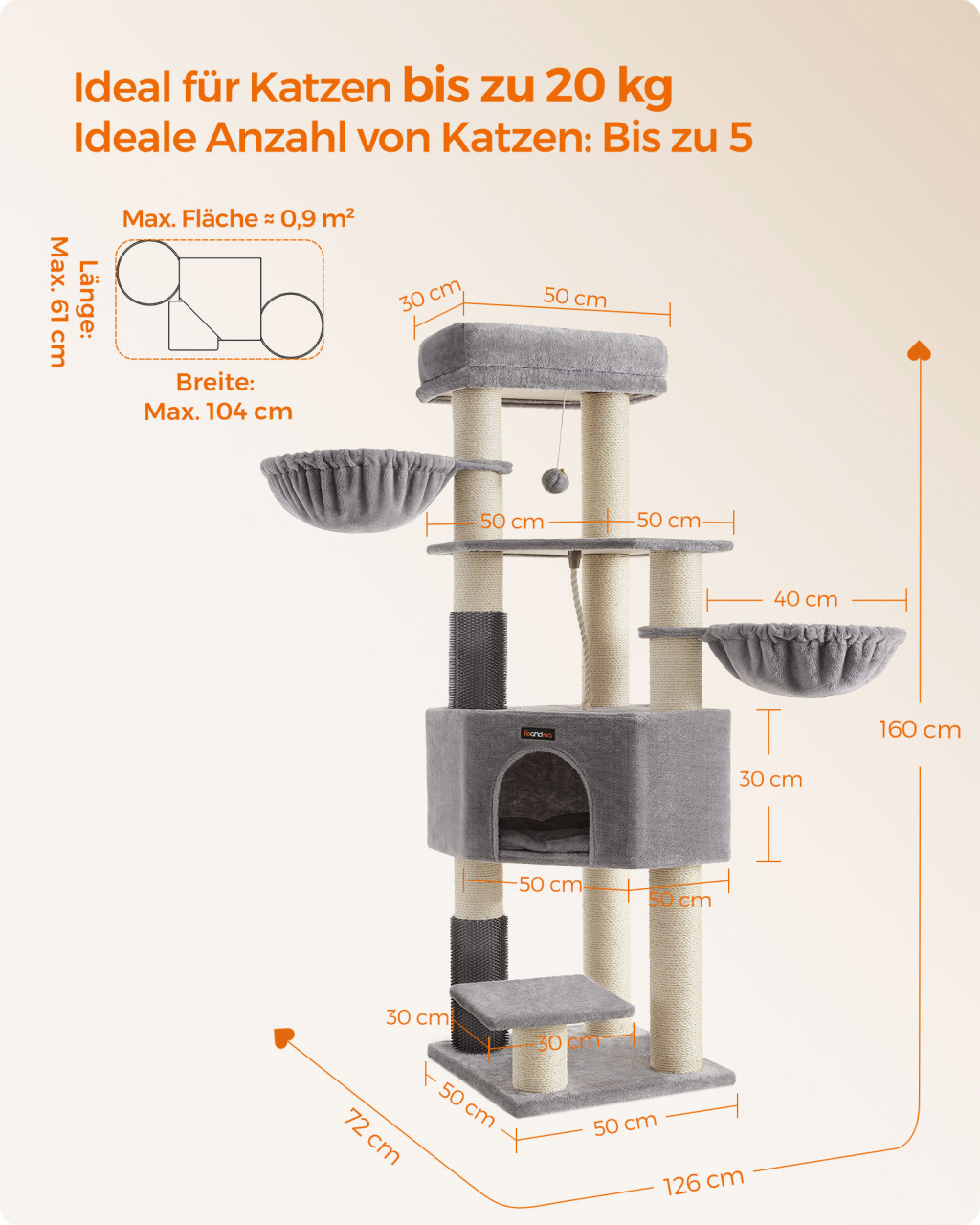 • Extra nagy, stabil szerkezet nagyméretű macskáknak
