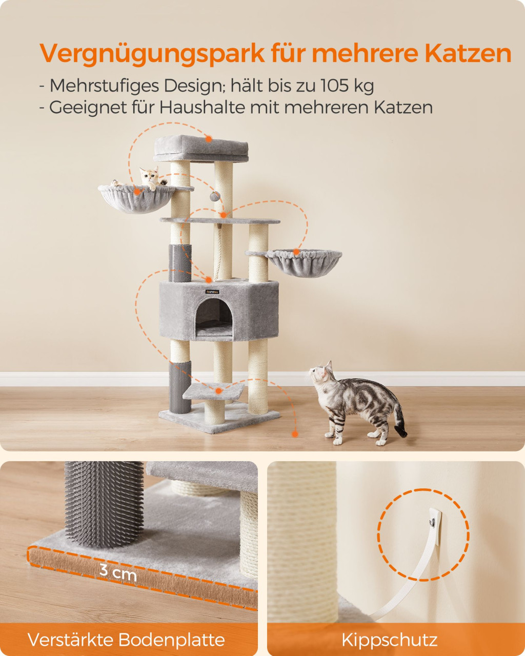 • Megerősített szerkezet: Biztonságos játék és pihenés akár több macska számára is