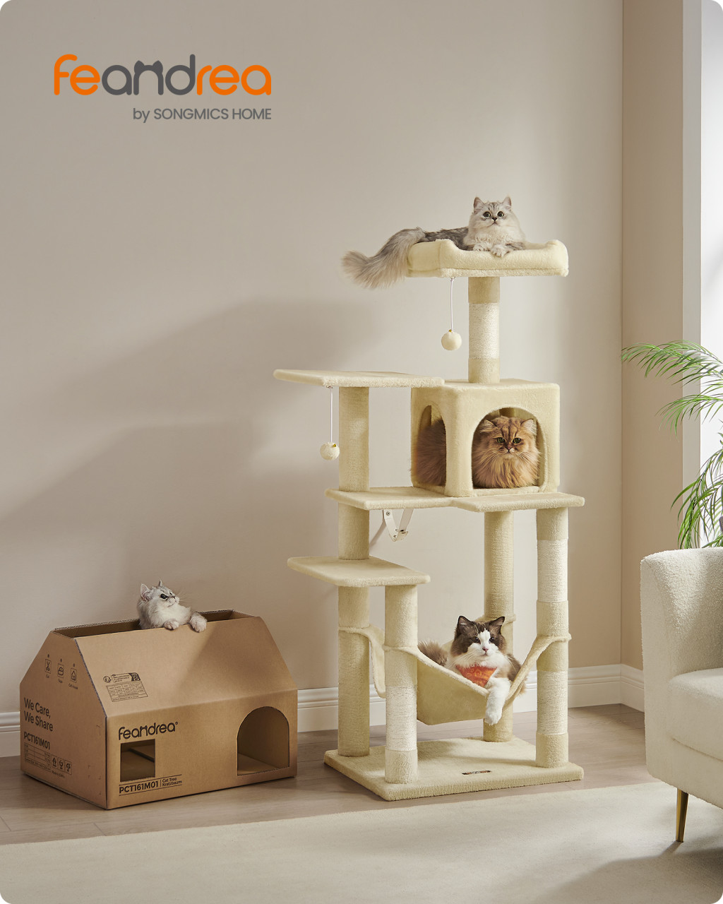 Feandrea PCT161M01 Többszintes Macska Bútor Bézs Plüss Játszótorony