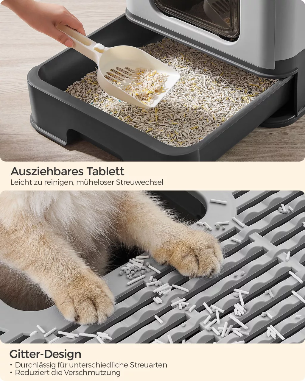 Feandrea Zárt Macska Toalett Kihúzható Tálcával Szürke