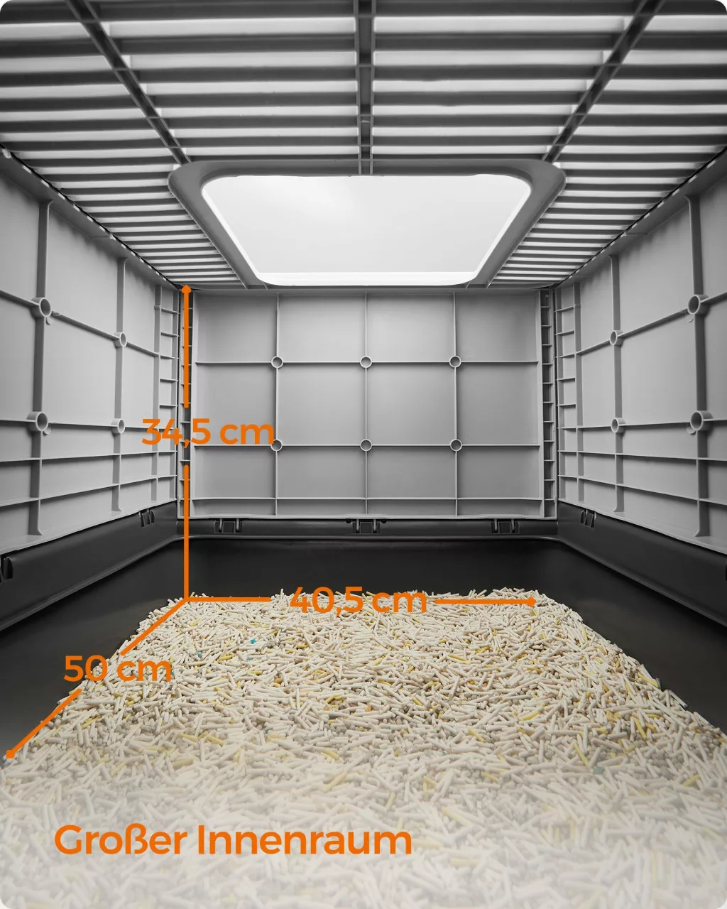 A tágas belső tér (50 x 40,5 x 34,5 cm) kényelmes használatot biztosít még a nagyobb testű macskák számára is. A rugalmasan használható ajtó és a felső nyílás többféle be- és kijutási lehetőséget kínál, így minden macska igényeihez alkalmazkodik.