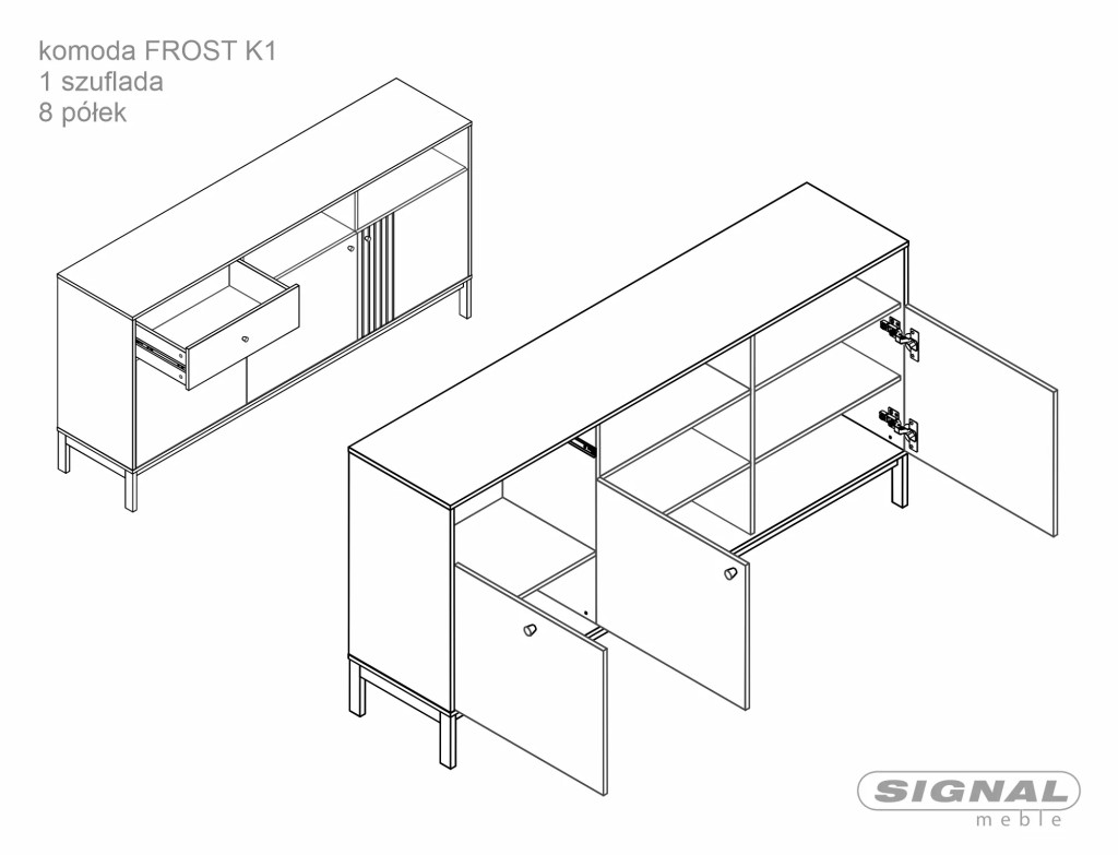 Rendezze be otthonát ezzel a modern és praktikus tárolómegoldással! Rendelje meg most a Frost K1 komódot!