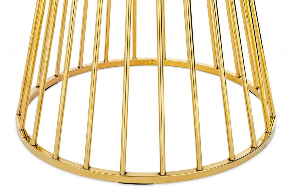 A masszív talapzat aranyszínű fémkeresztrudakból készült,