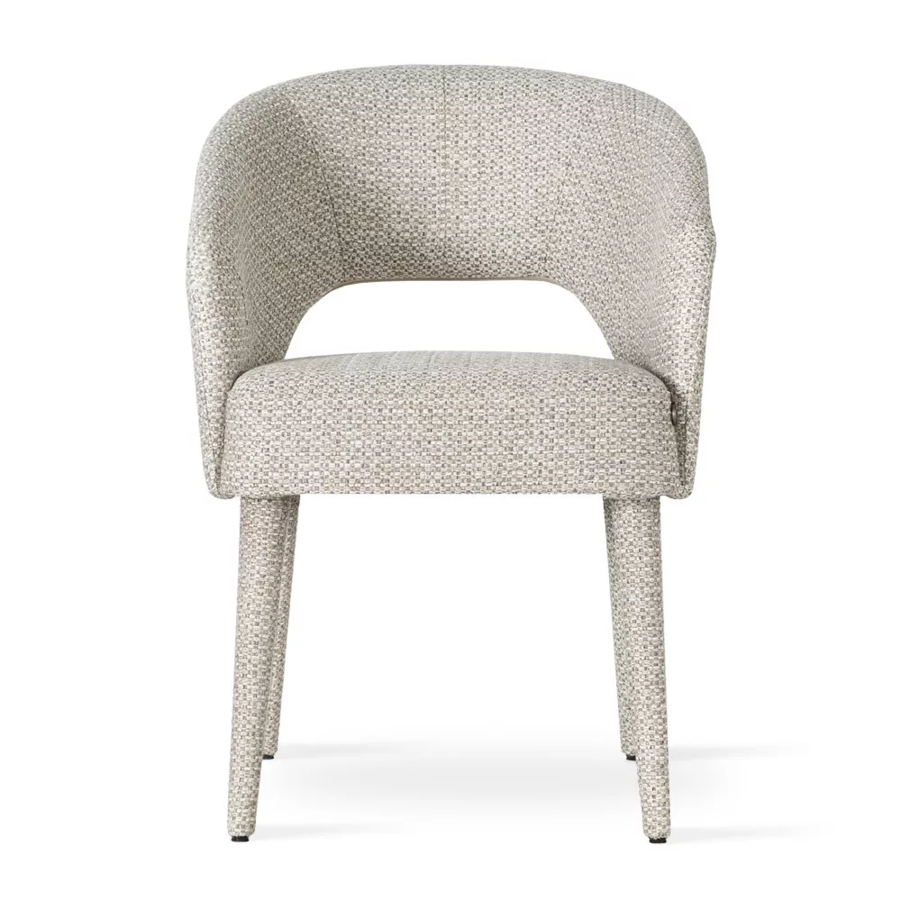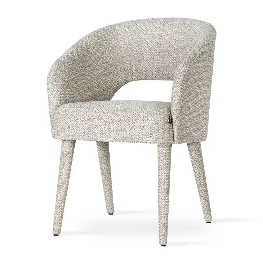 Elegáns, modern vonalvezetésű kárpitozott étkezőszék prémium minőségű szövet huzattal és ergonomikus kialakítással.