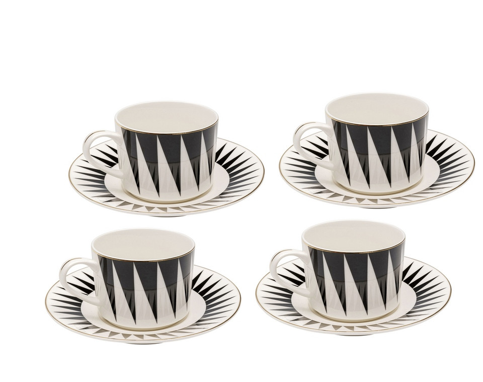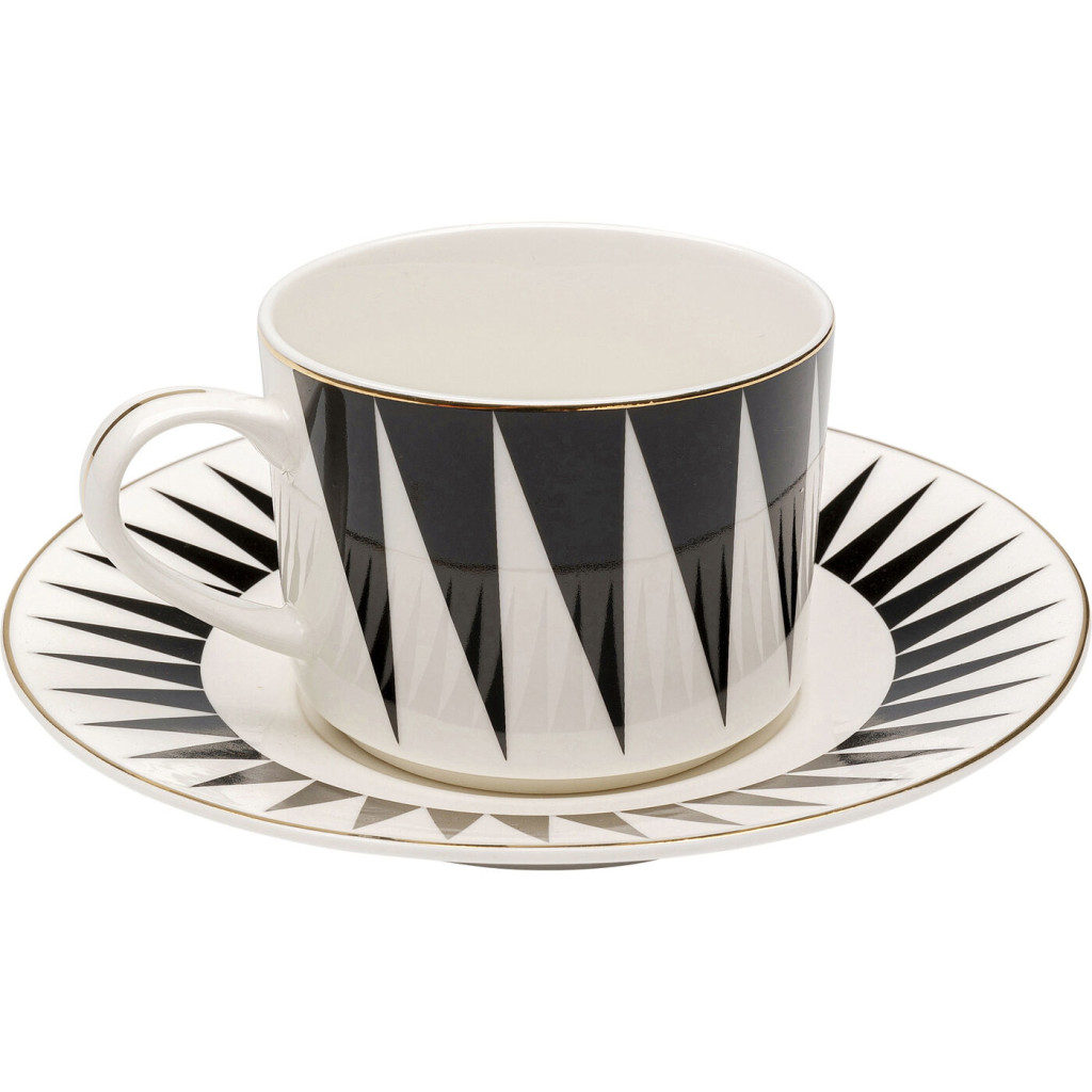 KARE Harlequin Porcelán Kávéscsésze Készlet Geometrikus Fekete-Fehér Arany Díszítéssel