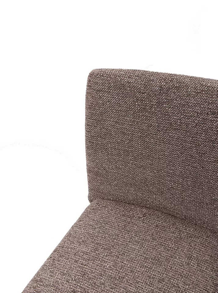 Az ALYA étkezőszék a modern design és a praktikus funkcionalitás harmonikus egyesítése. A meleg barna árnyalatú, 100% poliészter kárpit kifejezetten strukturált felületével azonnal megragadja a tekintetet, és egyedi karaktert kölcsönöz bármely térnek. Az egyszerű, geometrikus vonalvezetésű háttámla és ülőfelület könnyedséget és eleganciát sugároz, miközben a fém váz, fa és rétegelt lemez konstrukció garantálja a mindennapi használathoz szükséges stabilitást és tartósságot.
