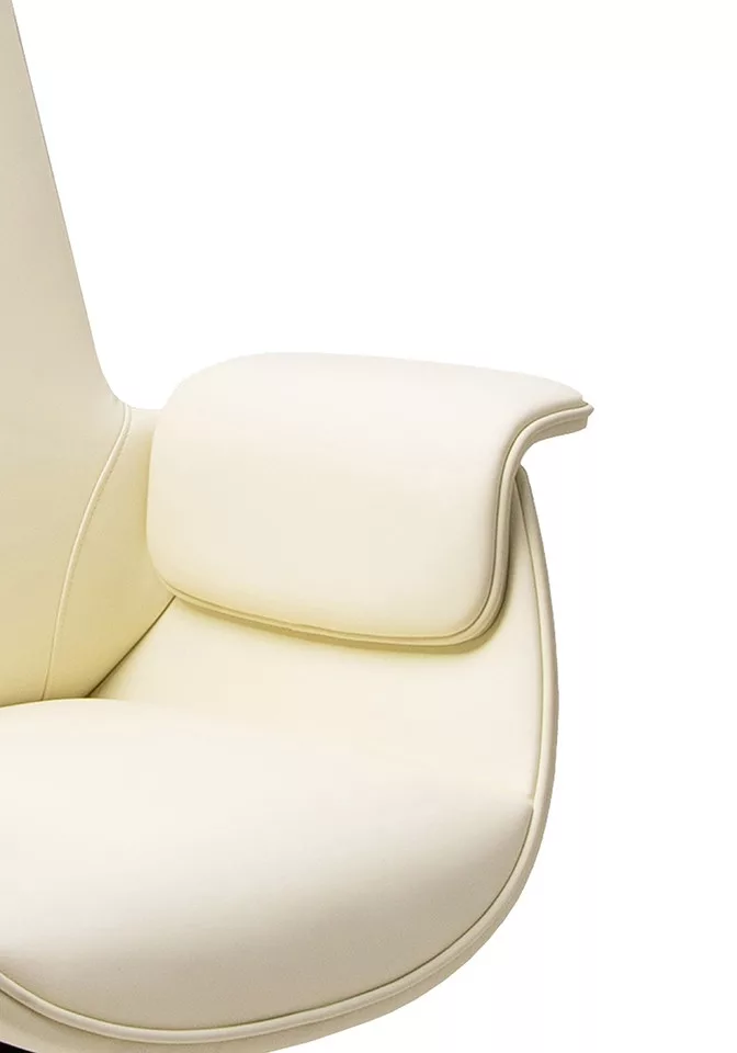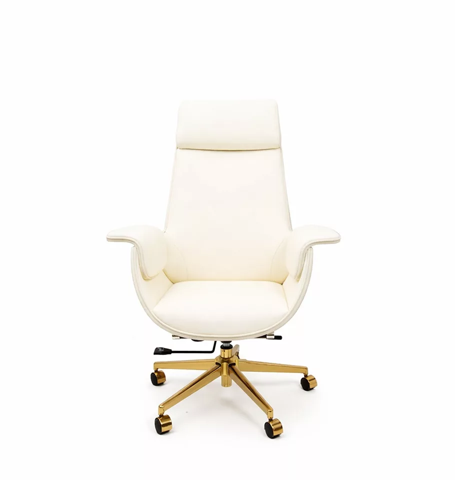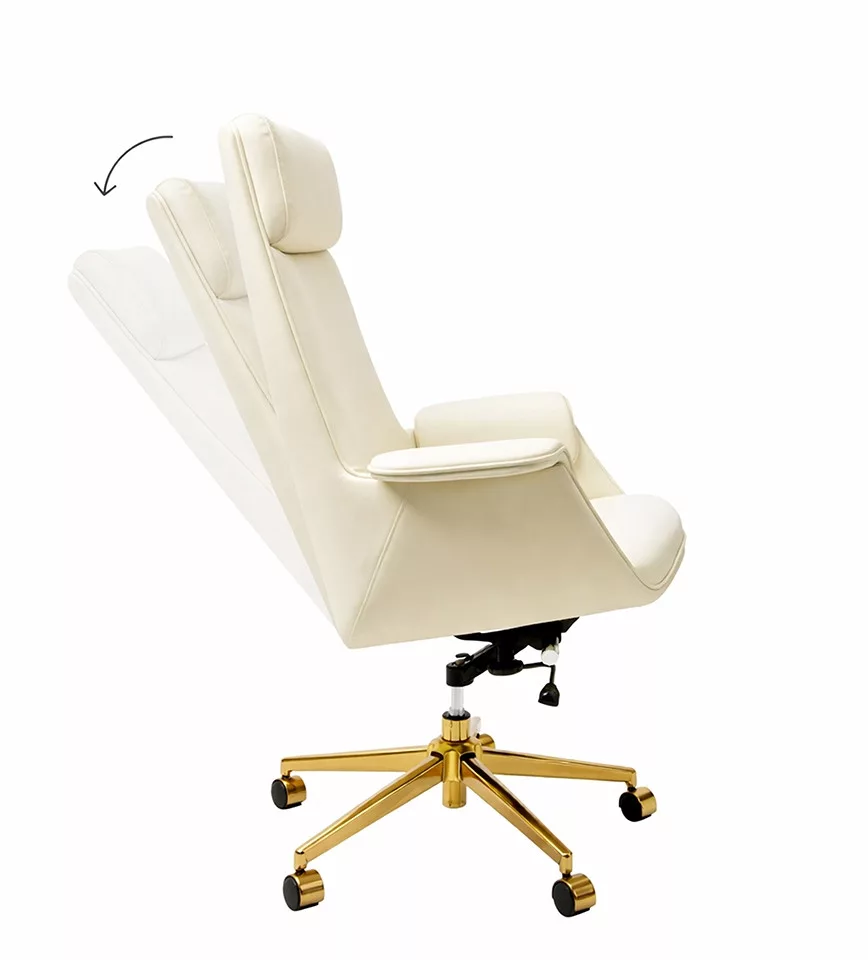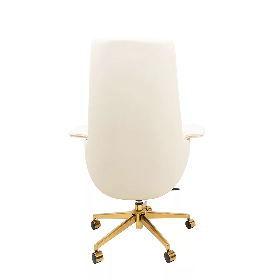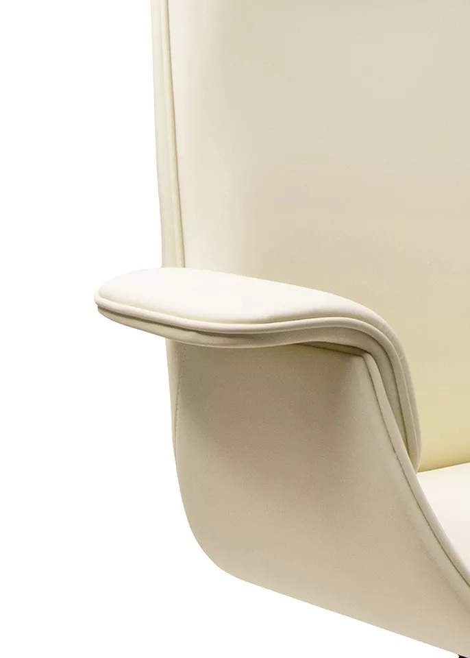 Az Admiral irodai fotel tökéletes harmóniát teremt az elegancia és a funkcionalitás között. A bézs színű ekobőr kárpit, az ergonomikus kialakítás és az arany színű fém alapzat luxust és kényelmet biztosít minden munkanapra.