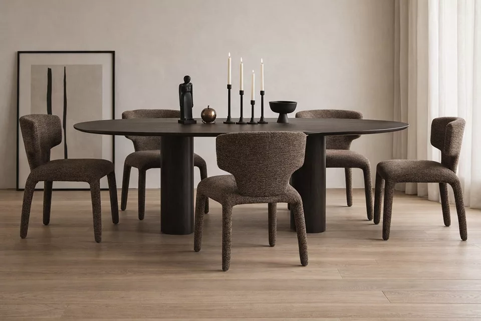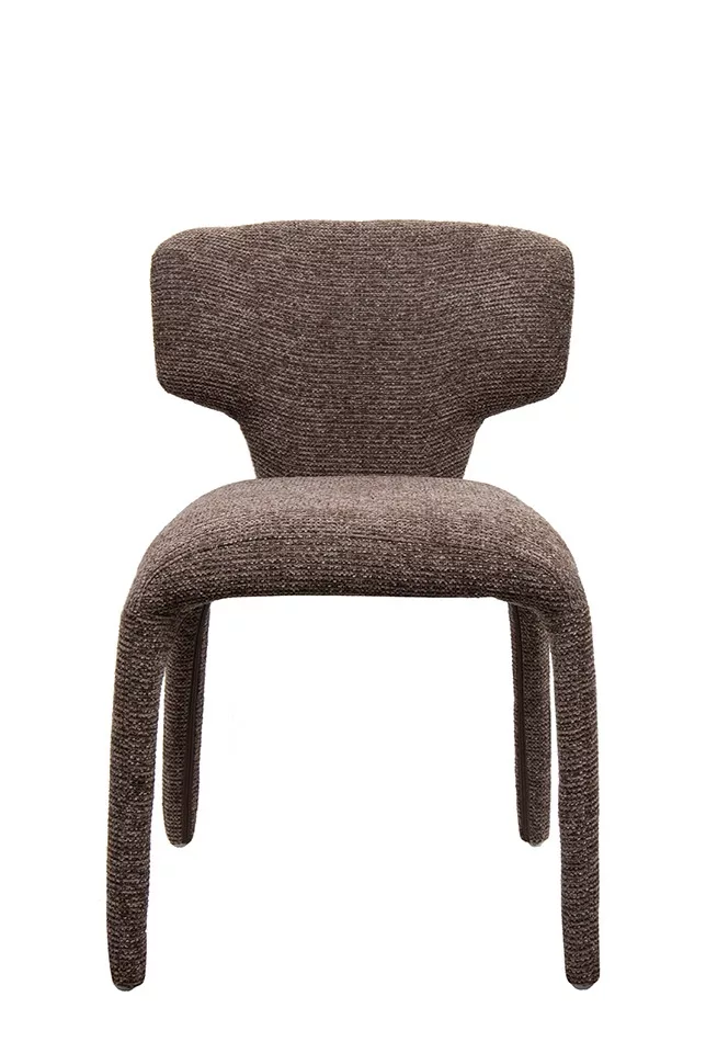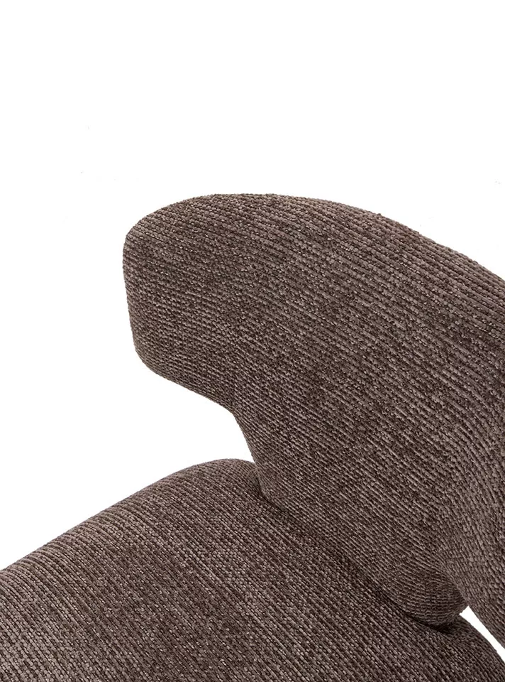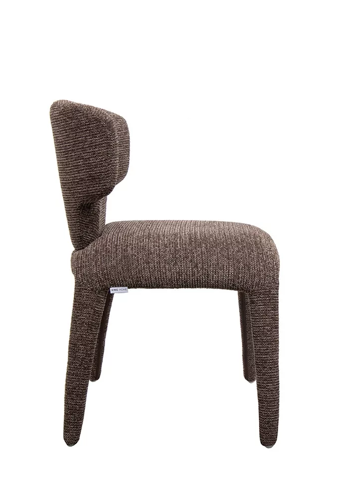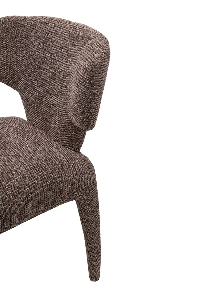 A King Home Apulia designer szék lenyűgöző, szoborszerű formájával és strukturált barna kárpitjával modern eleganciát kölcsönöz otthonának. Kiváló kényelem és tartósság egyedülálló dizájnban.