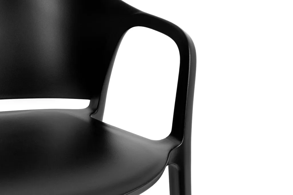 A Camel szék egy elegáns és sokoldalú bútor, amely tökéletesen ötvözi a modern dizájnt és a praktikus funkcionalitást. A szék teljes egészében kiváló minőségű fekete polipropilénből készült, ami biztosítja a tartósságot és a könnyű karbantarthatóságot. Az ergonomikus kialakítás és a karfák kényelmes ülést biztosítanak, míg a letisztult vonalak és az időtlen dizájn bármilyen térbe illeszkednek.