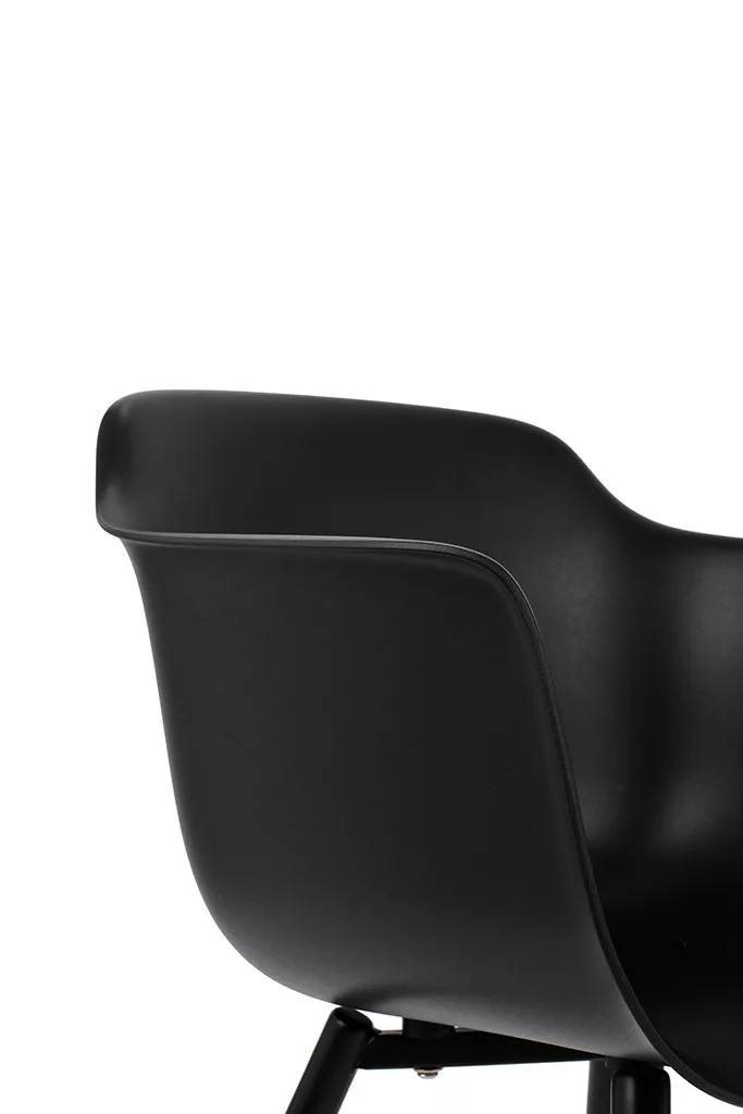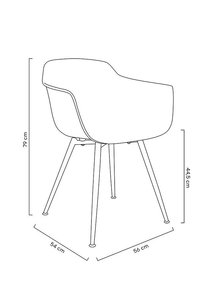 A szék különleges textúrájú felülete és a porszórt acél lábszerkezet harmonikus egységet alkot. Az állítható talpak és a széles karfa praktikus kiegészítői ennek a sokoldalú bútordarabnak.