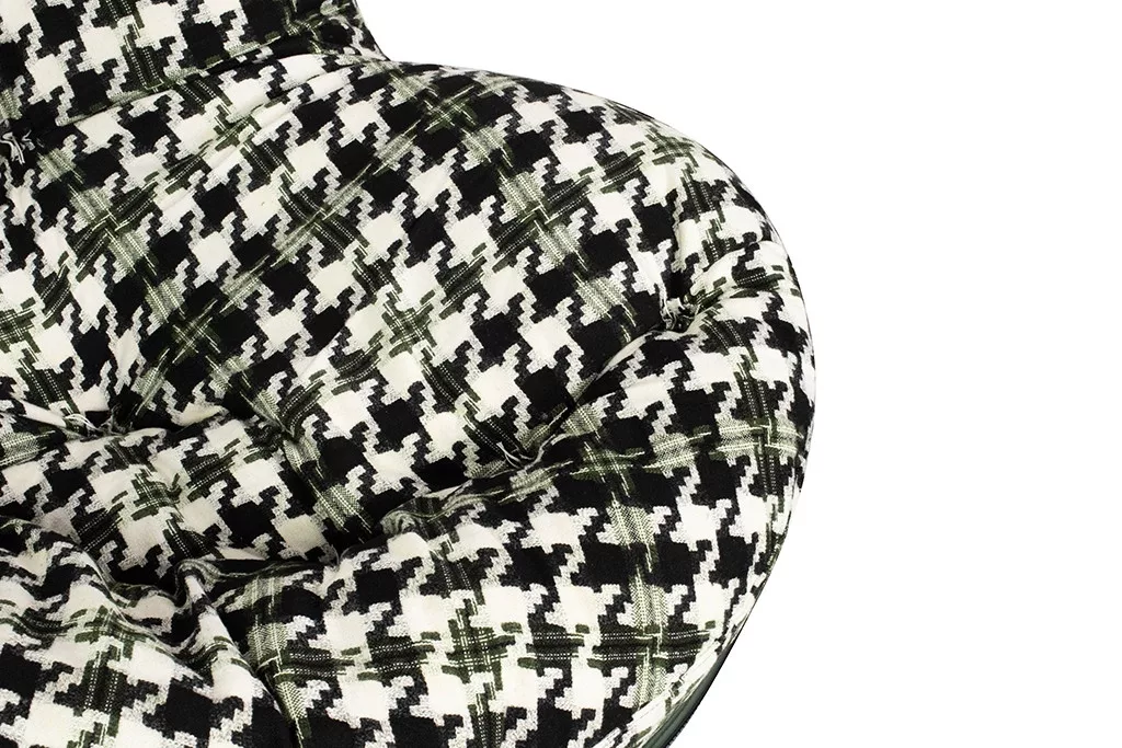 A FATTY hintaszék ötvözi a klasszikus és modern dizájnt a kivételes kényelemmel. A sötétzöld műbőr váz és a pepita mintás, vastag párnázat harmonikus egységet alkot, míg a fa talp kellemes ringató mozgást biztosít.