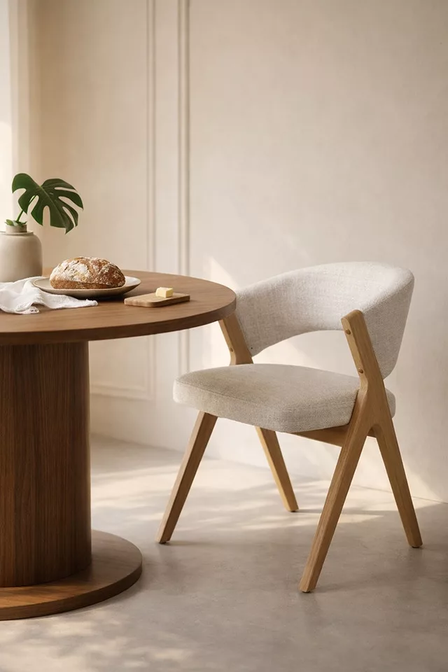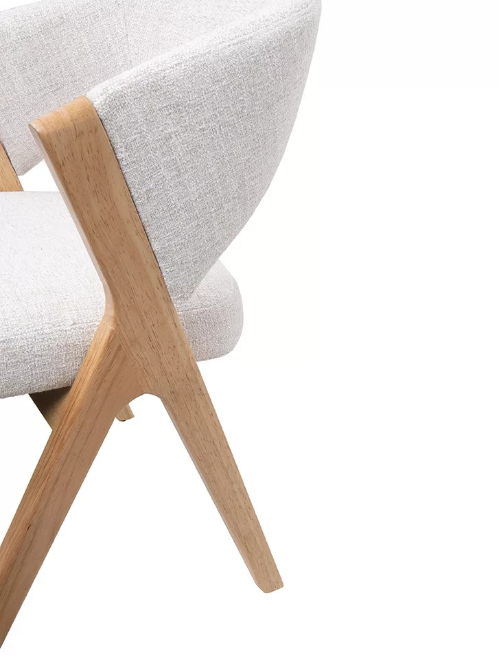 A szék stabil szerkezete fa és rétegelt lemez kombinációjából készült, amelyet fém elemek erősítenek meg a maximális tartósság érdekében. A habszivacs betét további kényelmet nyújt, miközben kiemeli a bútor funkcionális jellegét. A világos bézs szín és a természetes fa lábak tökéletesen illeszkednek a modern és skandináv berendezési stílusokhoz, elegáns és időtálló megjelenést kölcsönözve bármely helyiségnek.