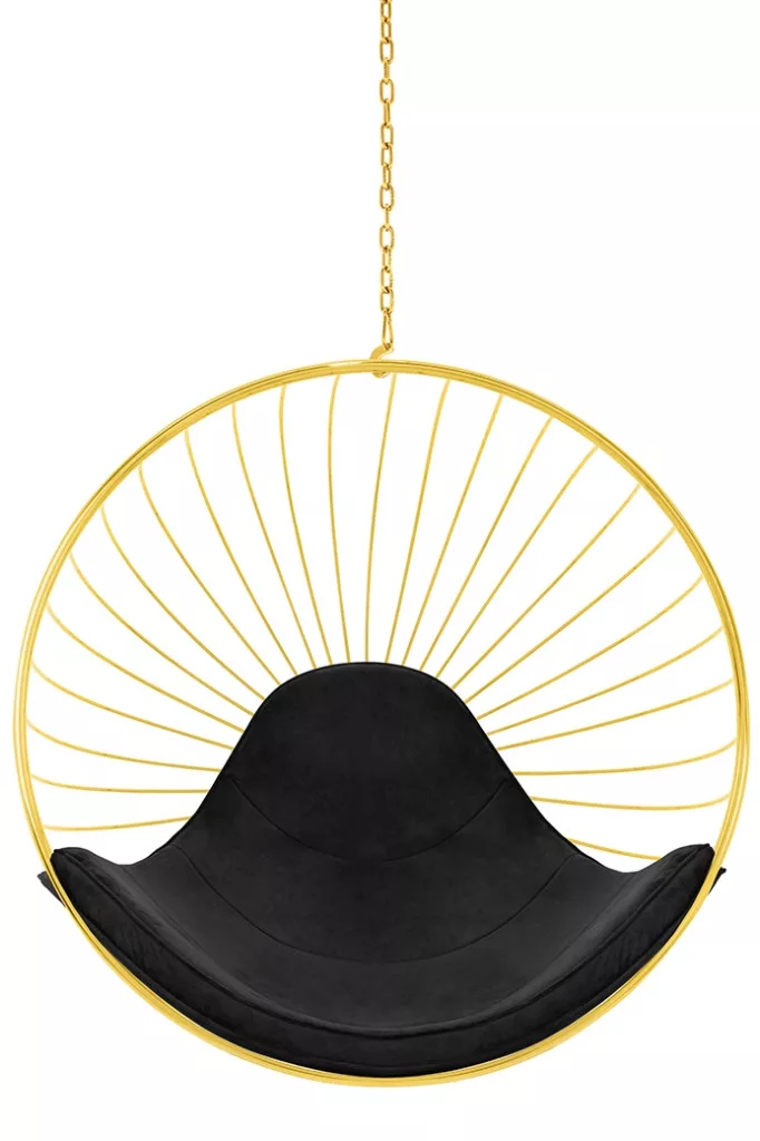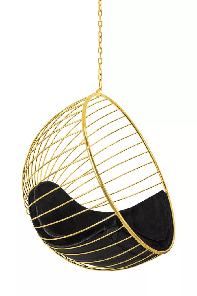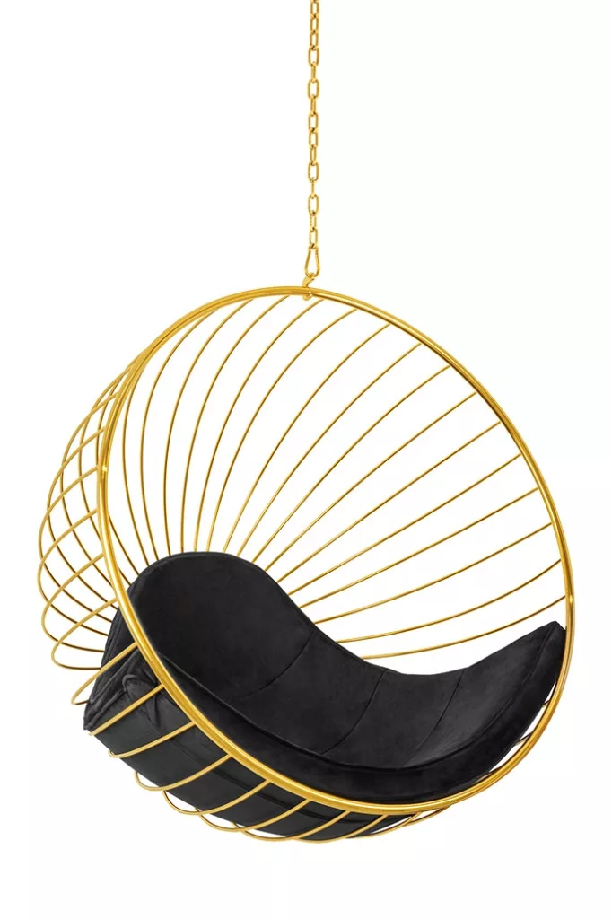 King Home GABBIA Függő Fotel Arany-Fekete Velúr