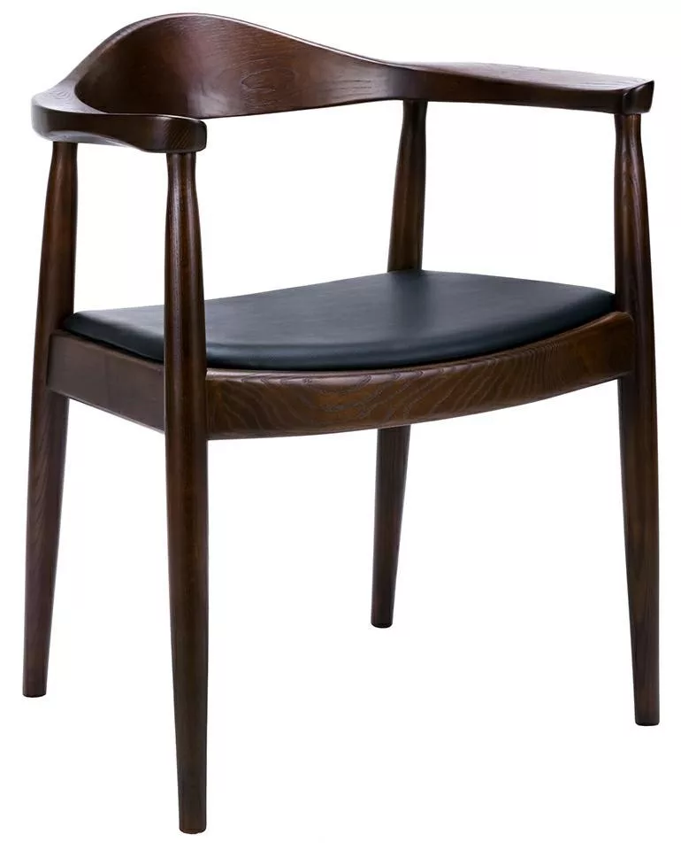 A Kennedy szék a skandináv dizájn esszenciáját testesíti meg letisztult vonalaival és kifinomult megjelenésével. A sötétbarna kőrisfa váz és a fekete műbőr ülőfelület harmonikus kombinációja modern eleganciát kölcsönöz a darabnak. Az ergonomikusan kialakított kartámasz és háttámla maximális kényelmet biztosít.