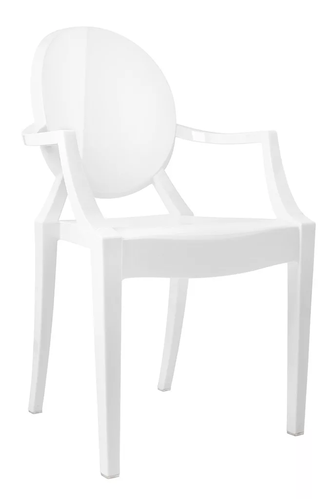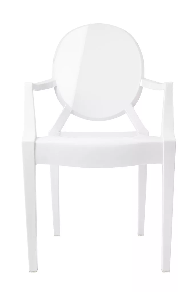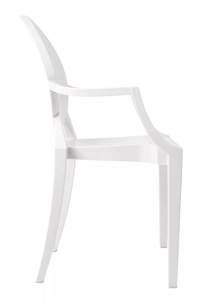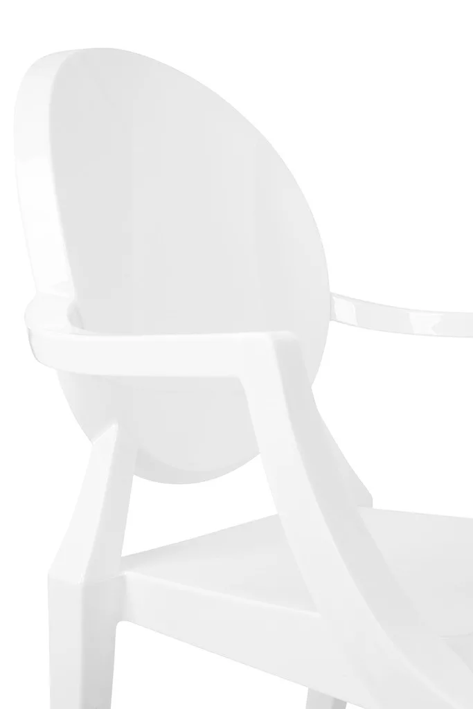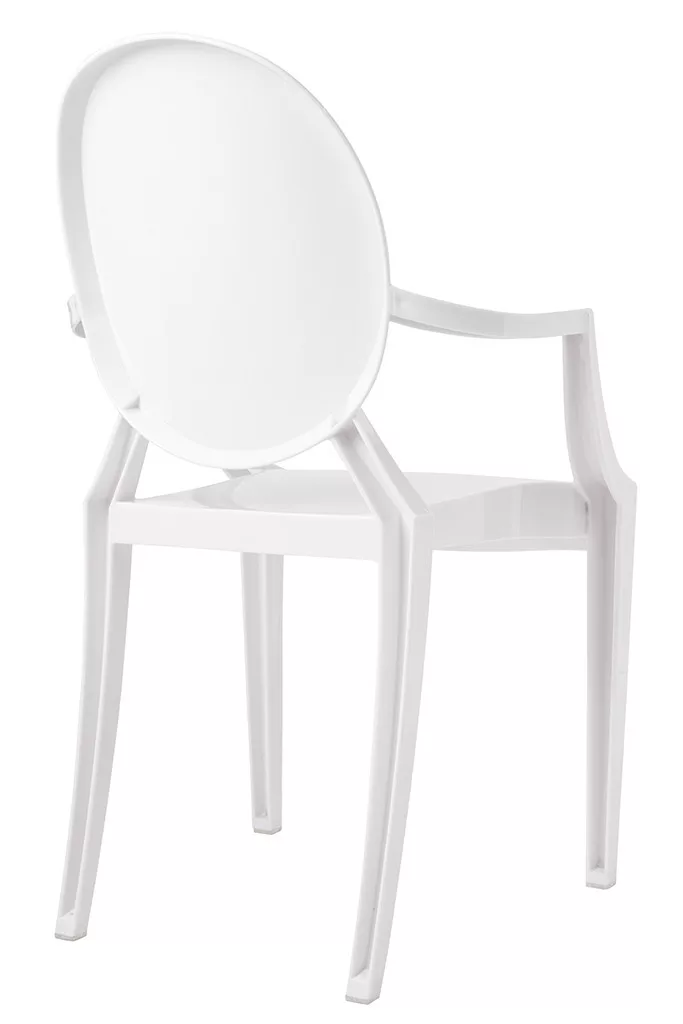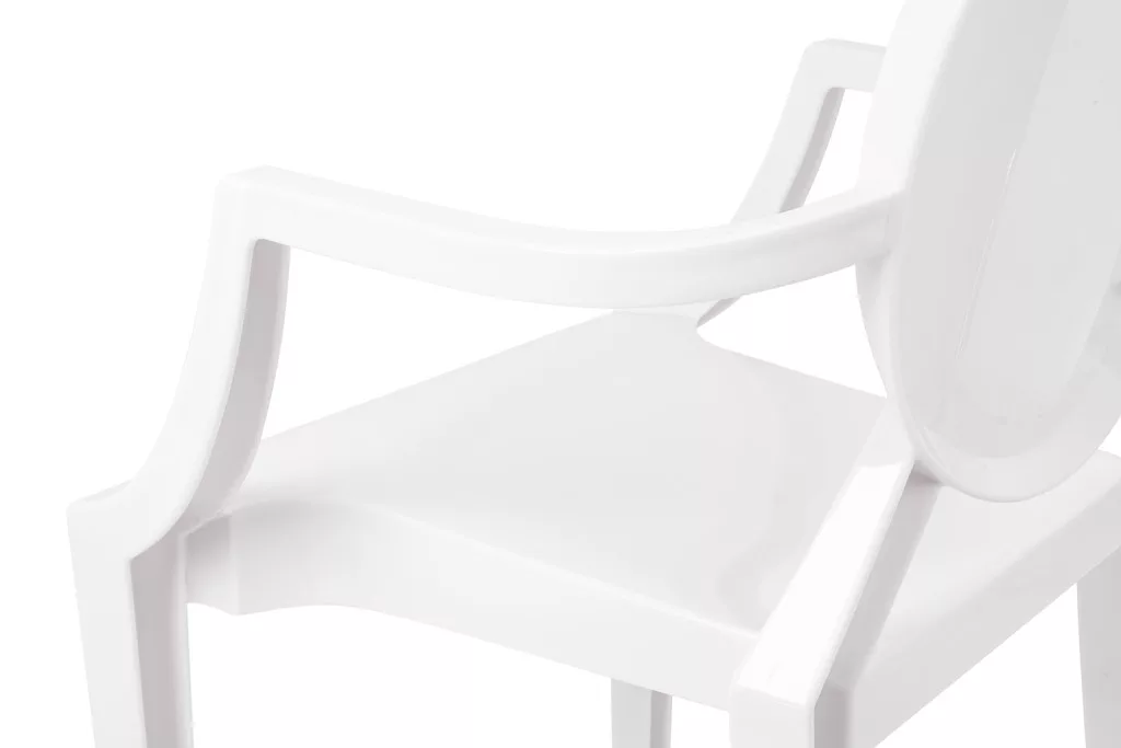 Elegáns, XV. Lajos stílusú fehér karfás szék polikarbonátból, amely ötvözi a klasszikus formatervezést a modern anyaghasználattal. Kiváló teherbírású és strapabíró kialakítás teszi ideális választássá otthoni és közösségi terekbe egyaránt.