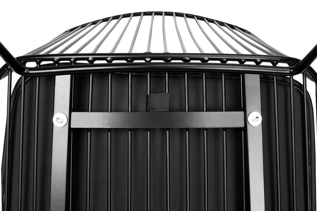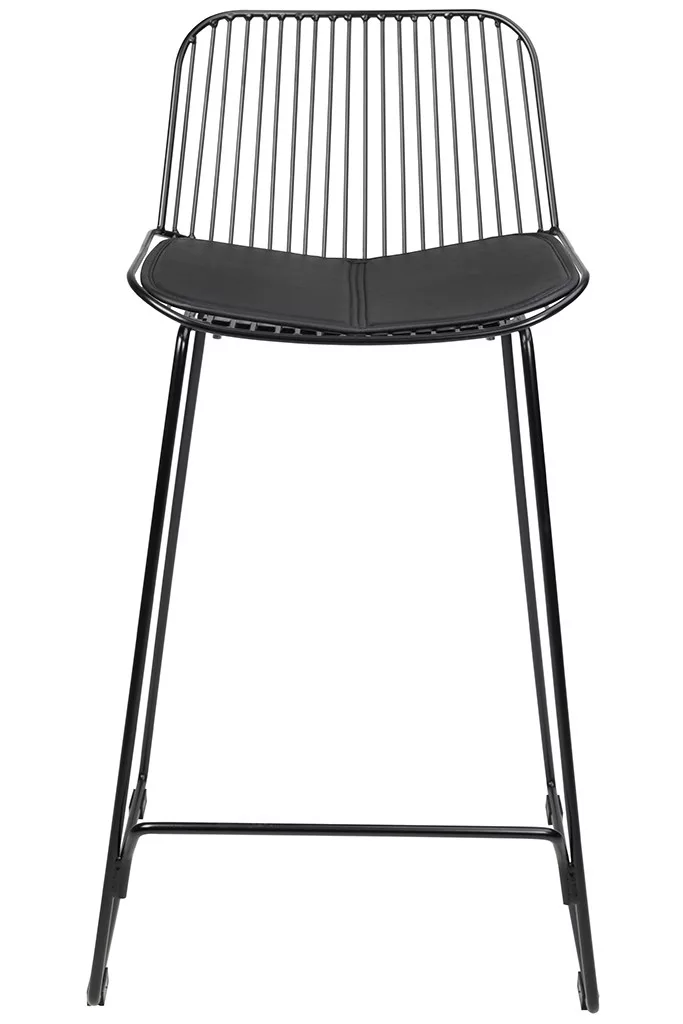 Modern, ipari stílusú bárszék fekete porszórt acél vázzal és kényelmes műbőr ülőpárnával. A geometrikus forma és a 66 cm-es ülésmagasság tökéletes választássá teszi bárpultokhoz és konyhaszigetekhez.
