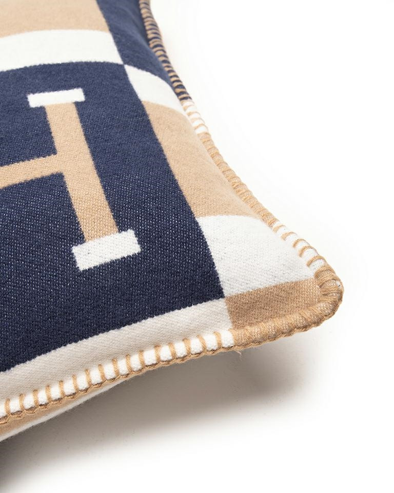 Ez a luxus díszpárna a King Home Paris Home kollekció kiemelkedő darabja, amely ötvözi a klasszikus eleganciát a modern dizájnnal. A tengerészkék és bézs színek harmonikus kombinációja, valamint a jellegzetes H-monogram egyedi karaktert kölcsönöz a párnának.