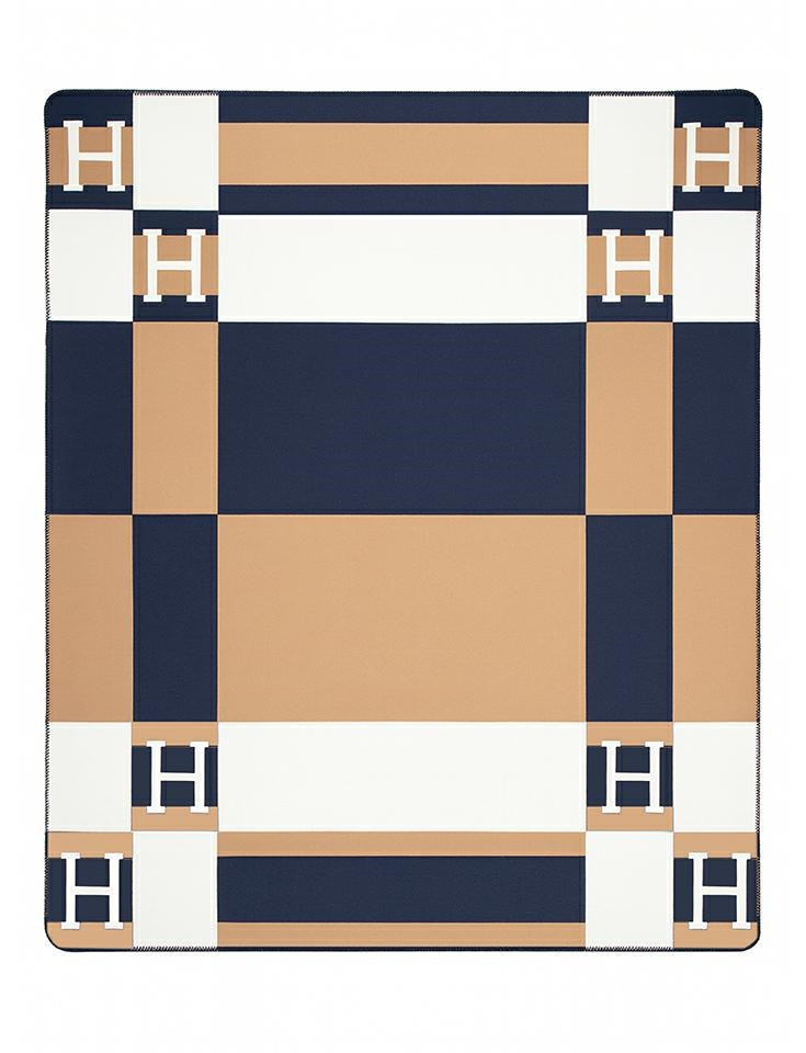 A King Home Paris Home takaró a modern lakberendezés kiemelkedő darabja, amely egyesíti a funkcionalitást és az esztétikumot. A geometrikus blokkokba rendezett H-betűs minta elegáns kontrasztot alkot a tengerészkék és barna színvilágban, míg a prémium minőségű anyag kellemes tapintást biztosít.