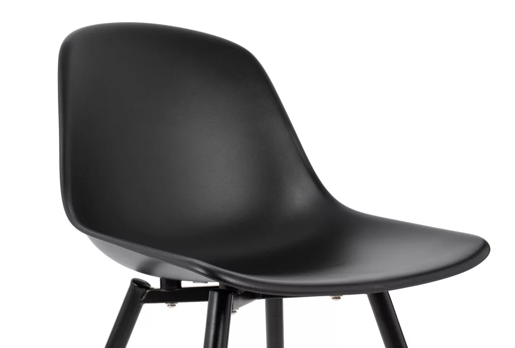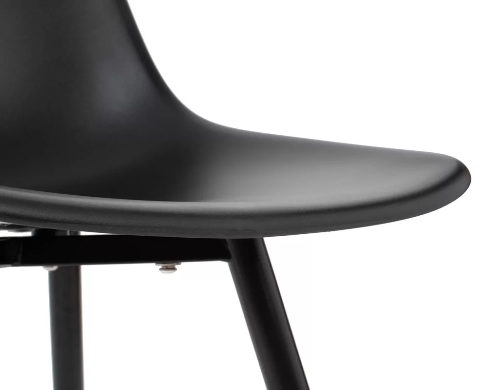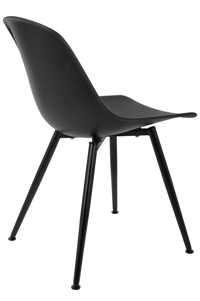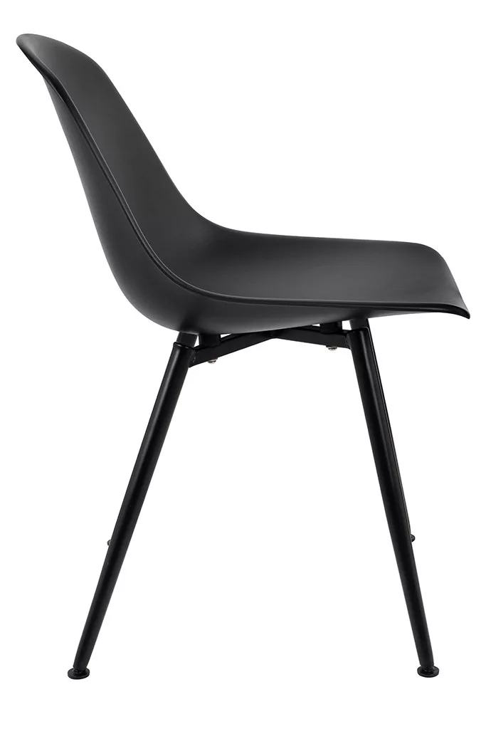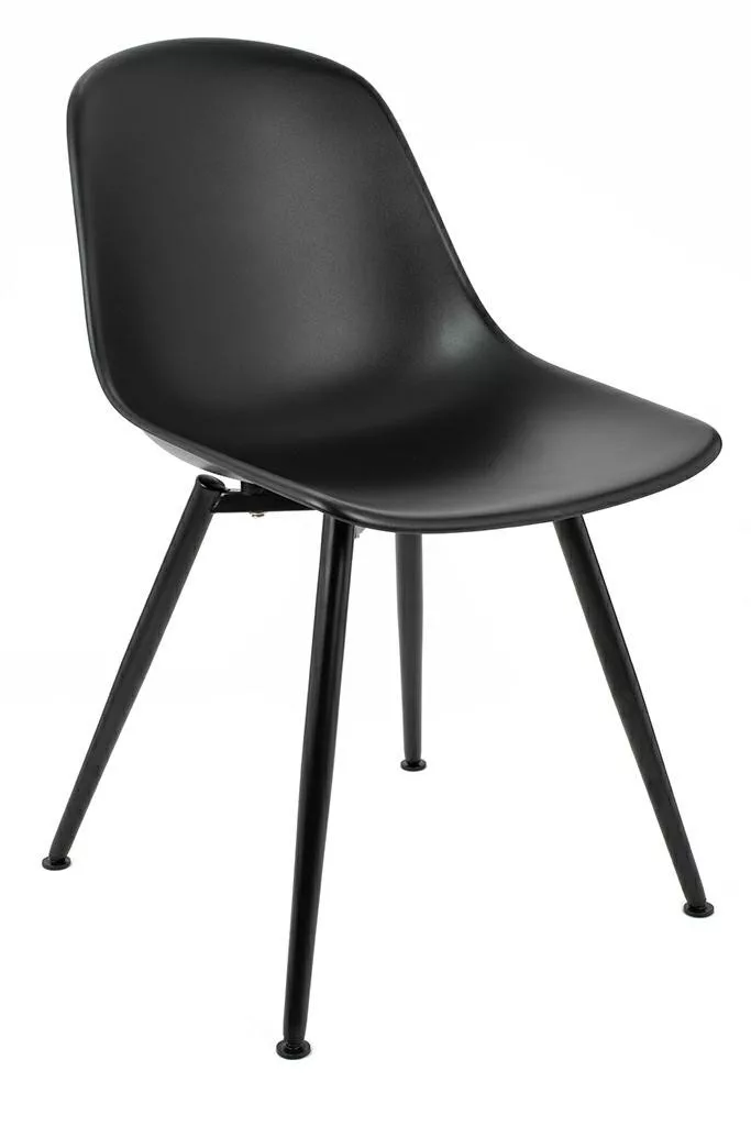 Modern, minimalista stílusú fekete szék polipropilén ülőrésszel és fekete lakkozott fém lábakkal. Univerzális megjelenésének köszönhetően tökéletesen illeszkedik bármilyen belső térbe.