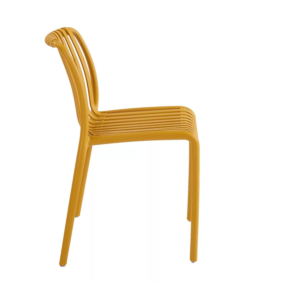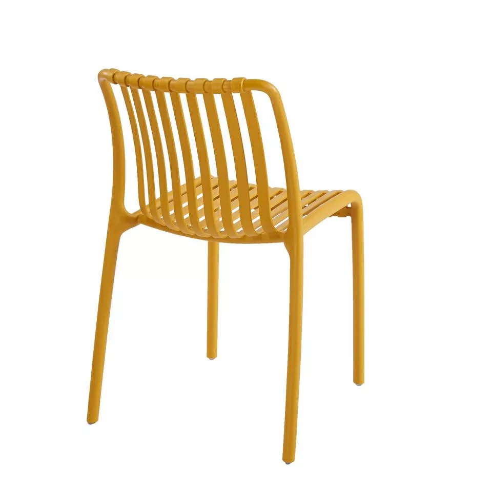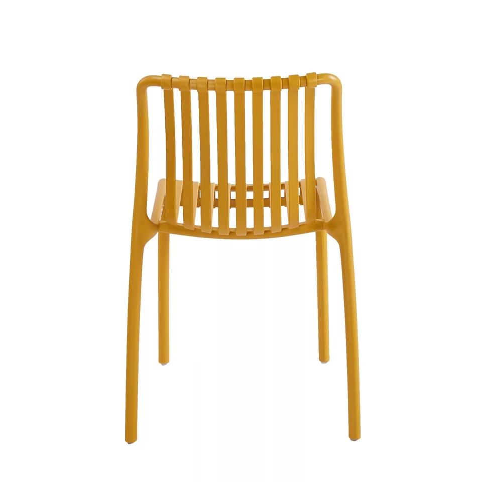 A King Home STRIPS szék a modern minimalista design és a praktikus funkcionalitás tökéletes ötvözete. Az élénk sárga színű, műanyagból készült szék egyedi, csíkozott kialakítása azonnal feldobja bármely teret, legyen szó nappaliról, teraszról vagy éttermről. Az ipari stílusú dizájn ihlette konstrukció nemcsak vizuálisan vonzó, hanem kiváló stabilitást és kényelmet is biztosít mindennapi használat során.