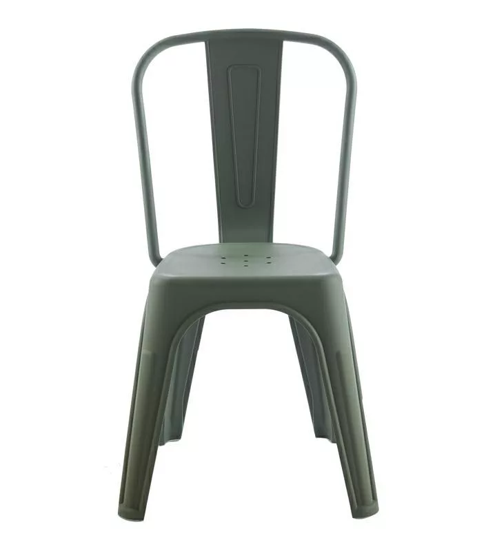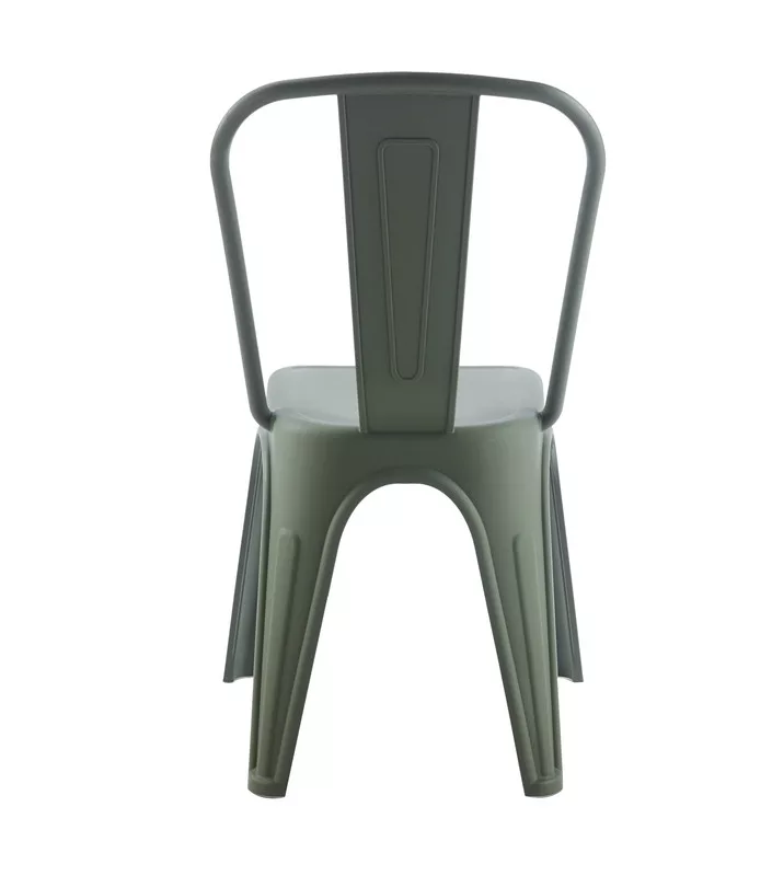 Ipari stílusú, modern szék sötétzöld színben, amely a nyers eleganciát ötvözi a praktikussággal. Tartós polipropylenből készült, UV-álló és akár 20 darabig egymásba rakható.