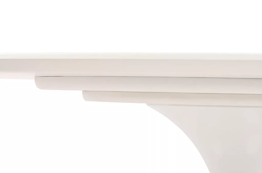 A King Home Tulip Ellipse étkezőasztal a modern design ikonikus darabja, amely egyesíti a funkcionalitást és az esztétikumot. Az ovális, fehér MDF asztallap félmatt felületkezelése elegáns megjelenést kölcsönöz, míg a karcsú, fehér porszórt fém lábszerkezet stabilitást és könnyedséget sugároz.