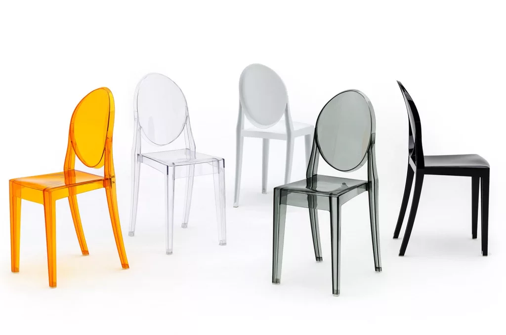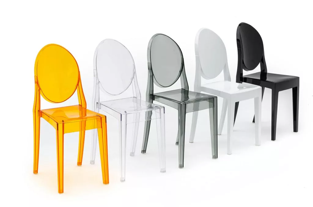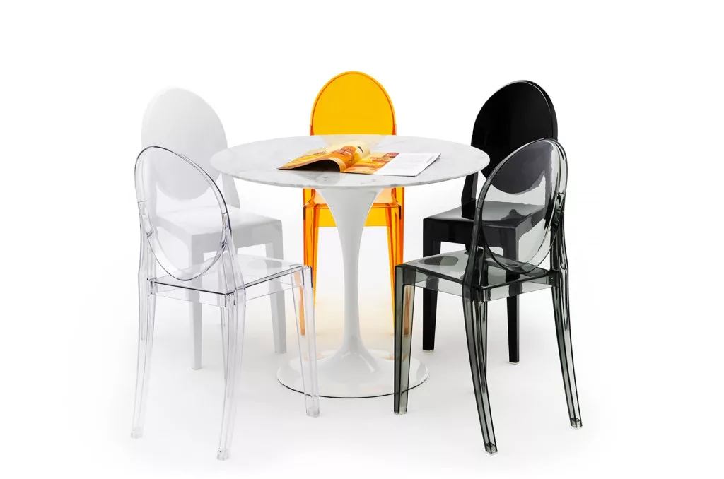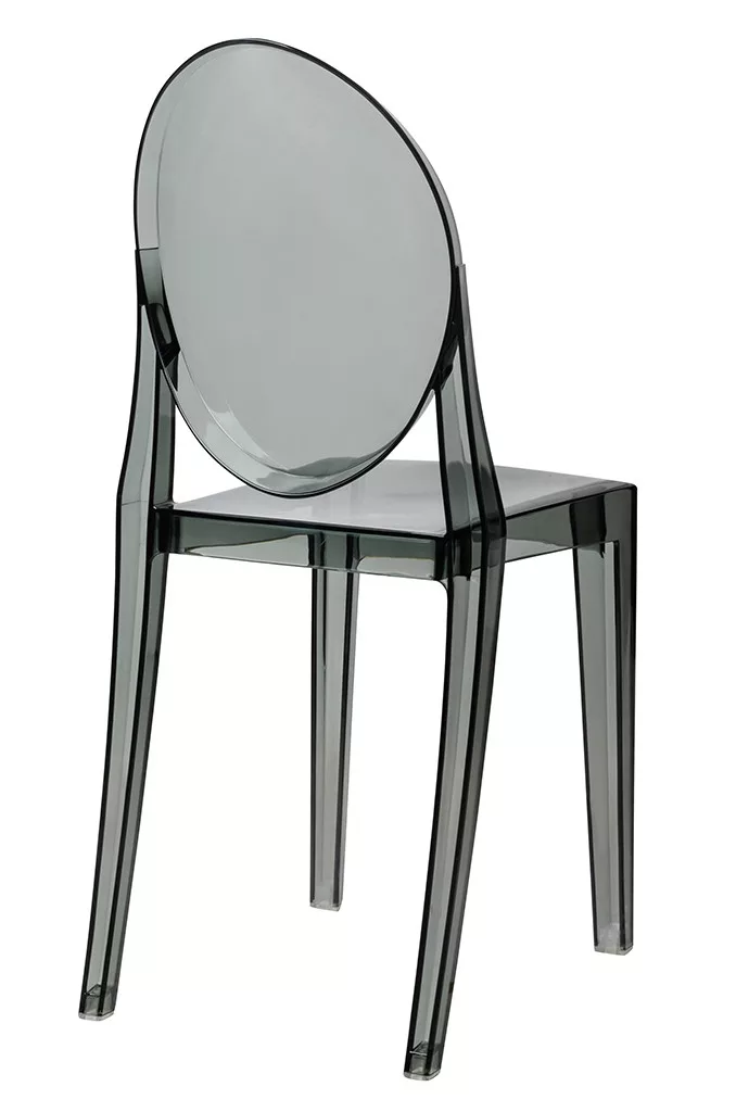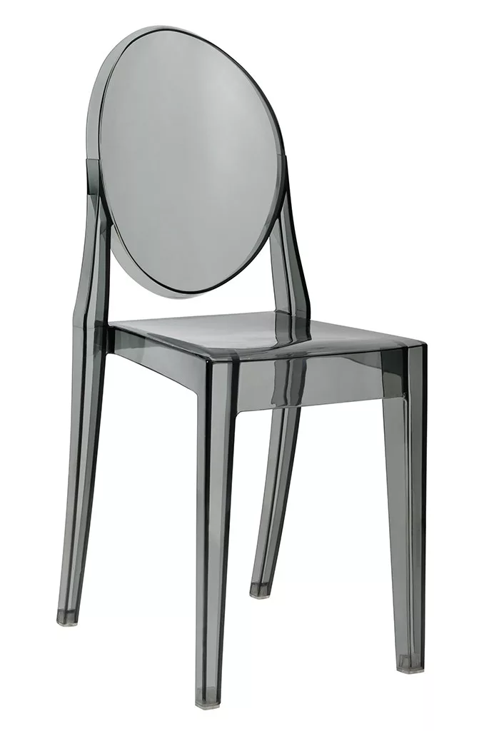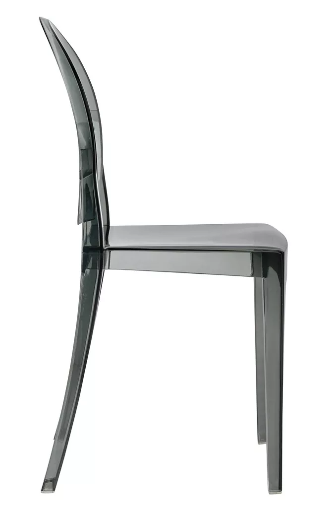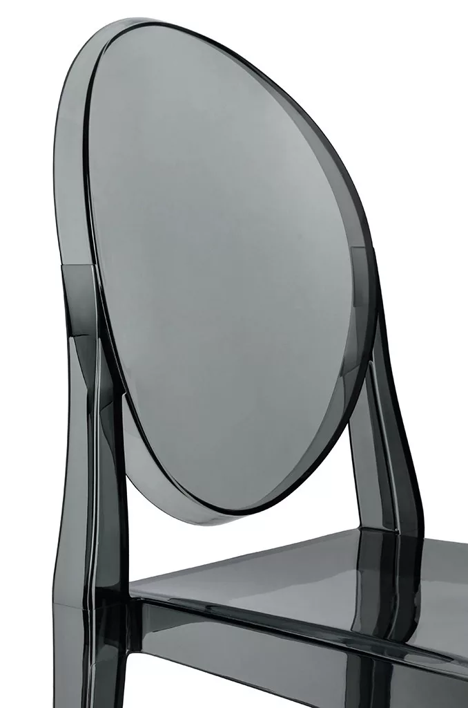 A Victoria szék a klasszikus formatervezés és a modern anyaghasználat tökéletes ötvözete. A füstszínű polikarbonátból készült szék légies megjelenése optikailag kevesebb helyet foglal, miközben strapabíró és időtálló darab marad.