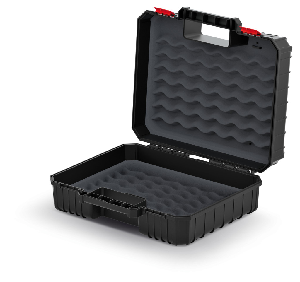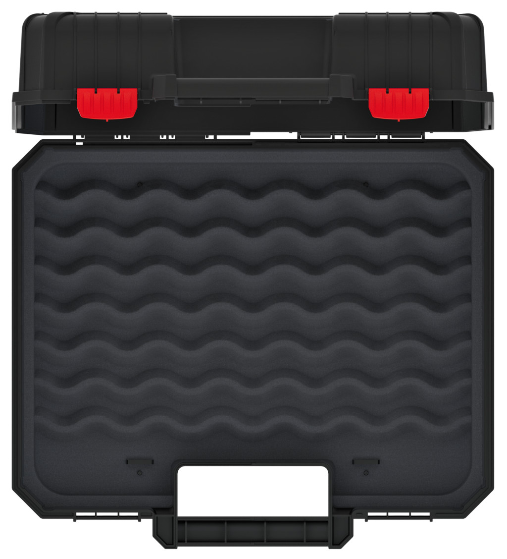 Strapabíró, nagy teherbírású szerszámkoffer beépített habszivacs védelemmel és ergonomikus fogantyúval, amely akár 10 kg szerszám biztonságos tárolására és szállítására alkalmas.